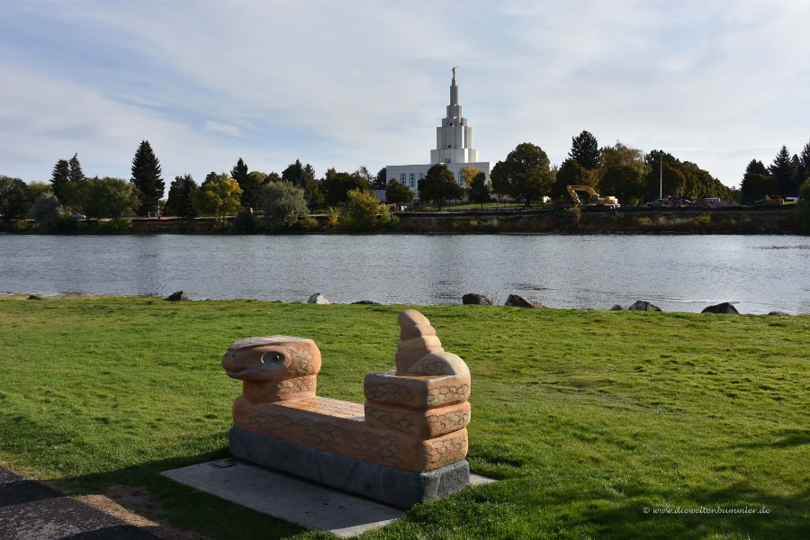 Amerika, in den Bundesstaat Idaho, in die Stadt Idaho Falls, die - man glaubt es kaum - nach den kleinen Wasserfällen dort benannt ist.