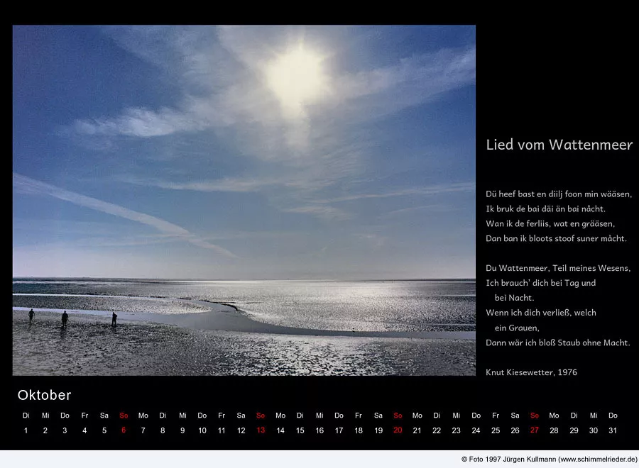 Das Foto entstand im Winter 2010/11 an der Eidermündung bei Tönning etwa in Höhe des Wohnmobil-Stellplatzes. Bei dem Text handelt es sich um einen Auszug aus einem Lied des Liedermachers Manuel Knortz, der in den 1980er Jahren mit seinem Freund Kalle Johannsen in Husum das Dragseth Duo gegründet hatte. In dem Lied beschreibt er, wie er als Jugendlicher eines Wintermorgens mit seinem Vater, mit dem er sich lange nichts mehr zu sagen hatte, an den Nordseestrand bei Schobüll ging, sie das Eis auf der Nordsee brechen sahen und dabei auch das große Eis zwischen ihnen brach.