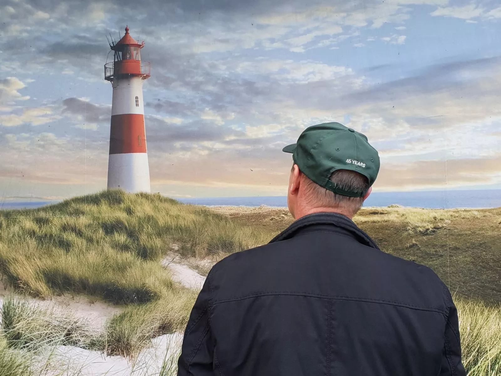Ich sehe rechts im Bild eine vertikale dünne Linie wie bei einer Tapete. Und der Leuchtturm sieht unecht beleuchtet aus. Kurz: Du stehst vor einem Bild (in deinem Wohnzimmer