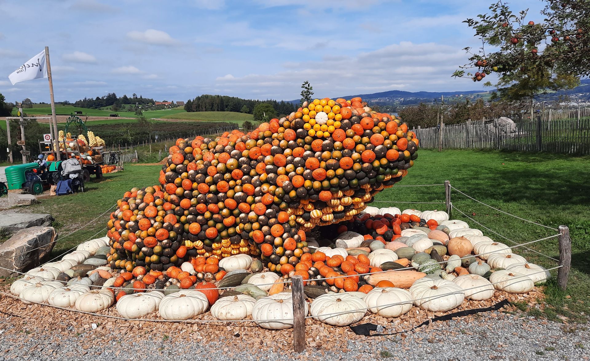 Nicht schlecht! Ich kenne die Ecke und erinnere mich noch daran, dass sie dort Rekord-Kürbisse gezüchtet haben. Aber solche Kunstwerke sind nochmal etwas ganz anderes.