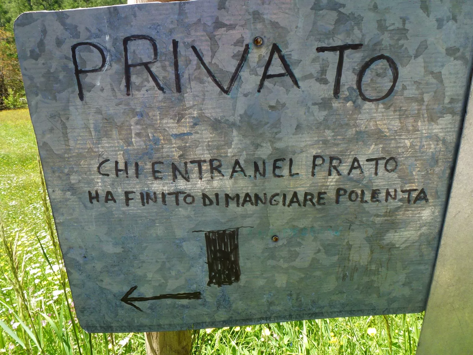 Meine Übersetzung: "Chi entra nel prato ha finito di mangiare polenta" - "Wer die Wiese betritt, hat seine letzte Polenta gegessen".