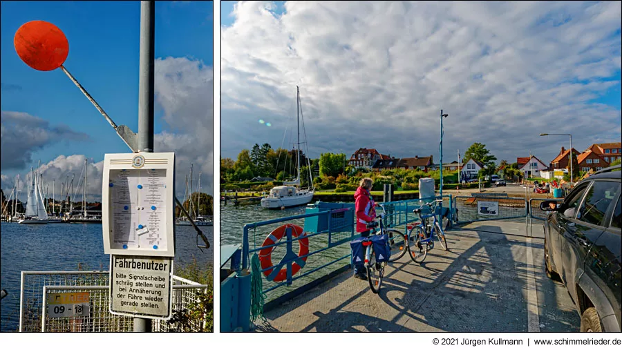 In der Stadt Arnis kurz vor der Schleimündung (wenn man denn bei einem Fjord von einer ‘Mündung’ sprechen kann) führt eine Fähre über die Schlei. Doch wie macht man dem Fährmann von der gegenüberliegenden Schleiseite aus deutlich, dass man seine Dienste in Anspruch nehmen will?