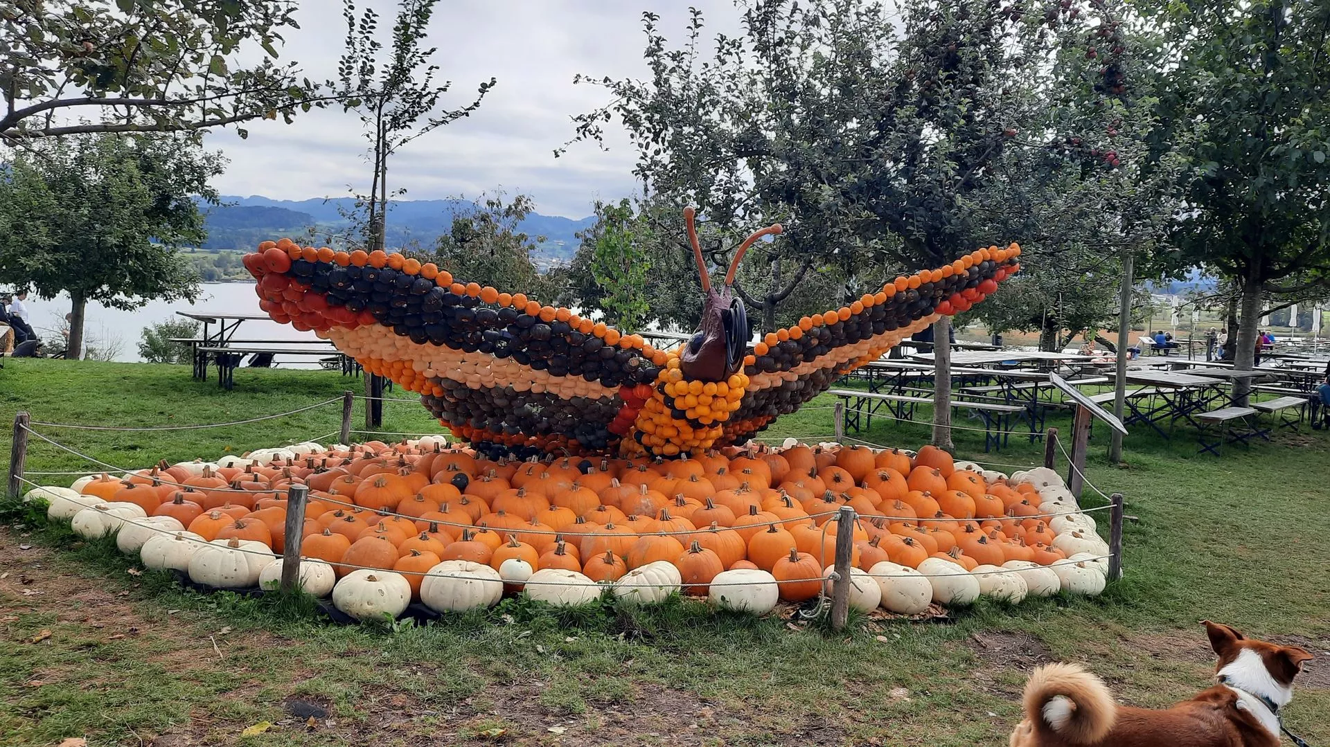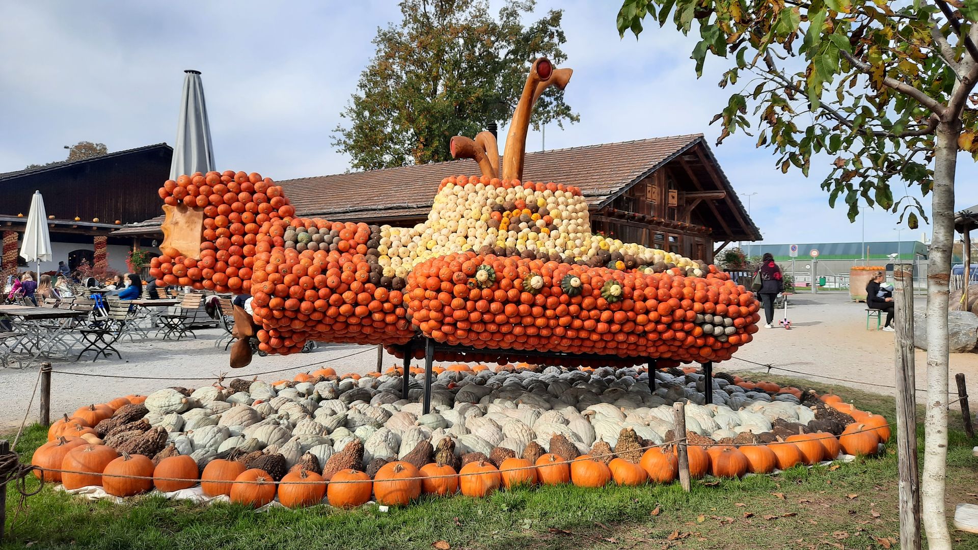Nicht schlecht! Ich kenne die Ecke und erinnere mich noch daran, dass sie dort Rekord-Kürbisse gezüchtet haben. Aber solche Kunstwerke sind nochmal etwas ganz anderes.