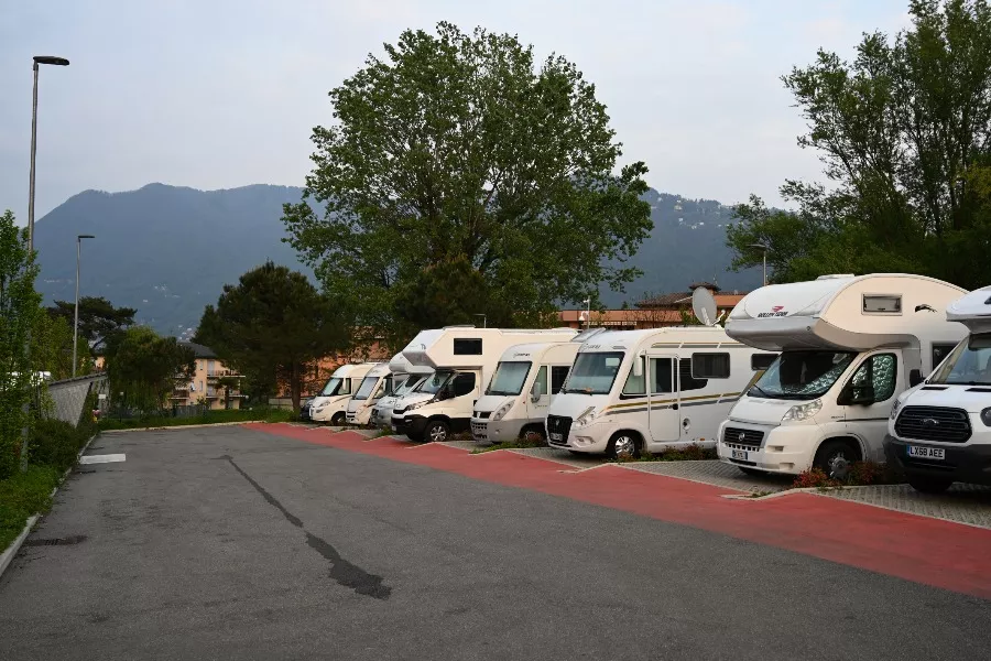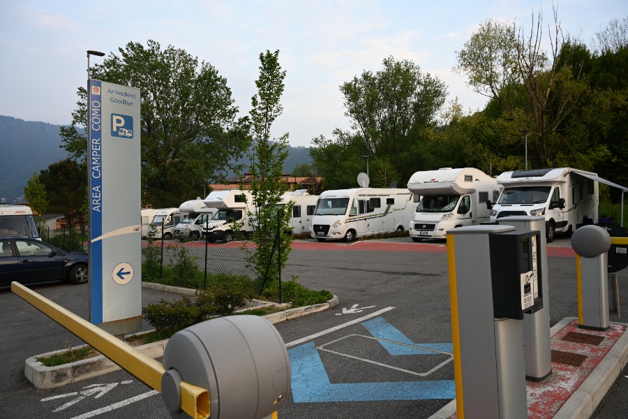 Nördlich von Como gibt es einen guten Wohnmobilstellplatz, für den man aber frühzeitig anreisen sollte. Er ist weniger für den Urlaub gedacht, sondern eher zur Zwischenübernachtung (autobahnnah) und/oder zur Besichtigung von Como. 10 Stellflächen erreicht man nach Durchfahrt der Schranke. Die Parzellen sind nicht eng, aber auch nicht so großzügig, dass man Markisen ausfahren könnte. Ich hatte die vorletzte Parzelle erwischt und das gegen 16 Uhr. Nach mir kamen noch ganz viele andere Fahrzeuge, die sich dann draußen hinstellten und dort kostenlos übernachteten. Gewünscht ist das allerdings laut Beschilderung nicht.