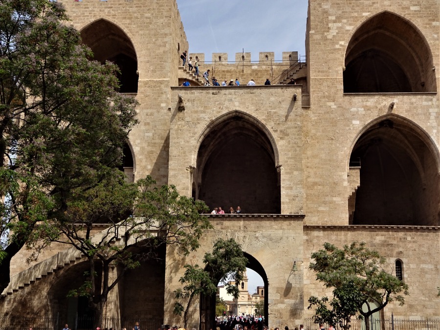Noch einige Gassen und da war auch schon der bekannte Markt Mercad Central, etliche interessante Kirchen, gepflegte Avenidas und Plazas, prächtige Gebäude, der Bahnhof, die Arena, die Kathedrale und Torres de Serranos mit Ausblick über die Stadt. Eine großartige Stadt, manchmal etwas hektisch und vor der Kathedrale ging es richtig rund. ![]()