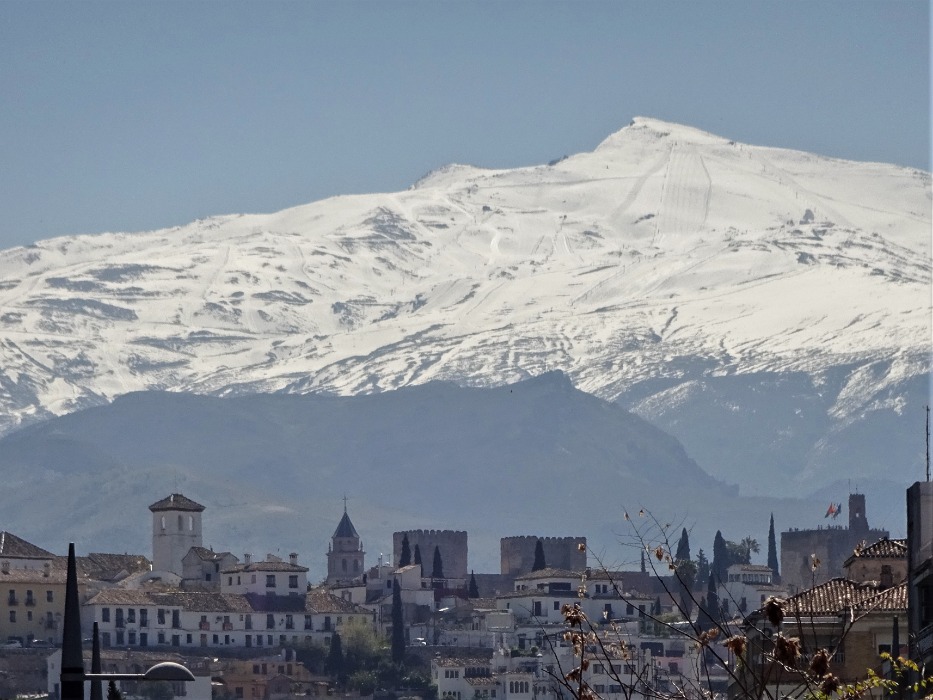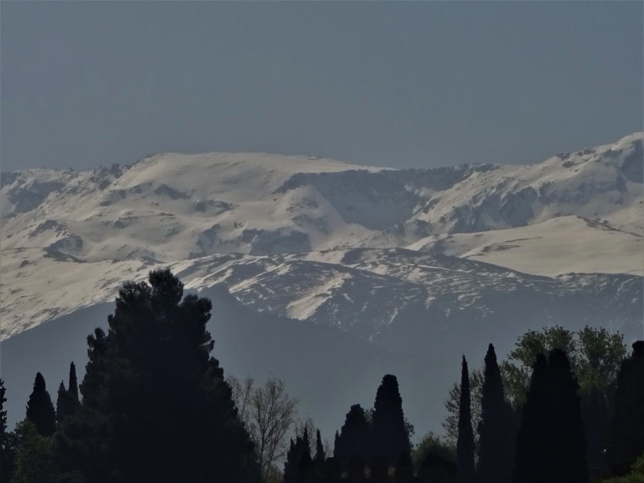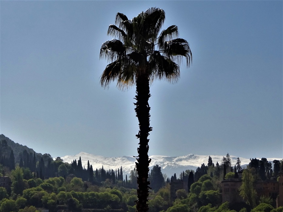 ). Die Fahrt dauerte rund 2 Stunden, das Wetter zeitweise bewölkt aber trotzdem hat sich die schneebedeckte Sierra Nevada blicken lassen. In Granada angekommen, haben wir eine Parkgarage in der Nähe vom Bahnhof angesteuert. Von dort sind wir dann Richtung Alhambra spaziert. Entlang einer Avenida, durch einen Park und vor uns der Blick auf die Serra Nevada. Leider um die Tageszeit Gegenlicht und somit haben wir wenig geknipst.