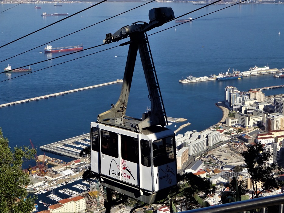 Unser erstes Ziel war natürlich der Felsen von oben und so sind wir zügig zur Seilbahn gewandert. Da wir zeitig unterwegs waren gab es bei der Kassa keinen Stau und konnten gleich in die nächste Gondel einsteigen. Oben angekommen hatte man eine tolle Sicht, auch rüber zu den Windrädern, an denen wir gestern vorbei fuhren. Da waren wenige Leute und so konnte man in aller Ruhe knipsen und die Aussicht genießen.