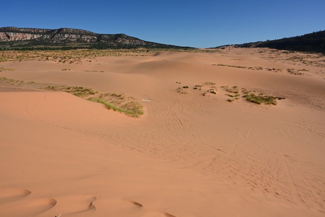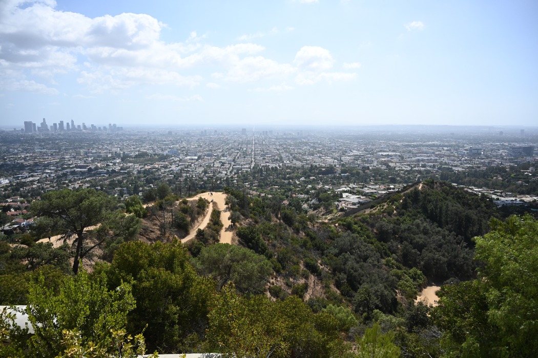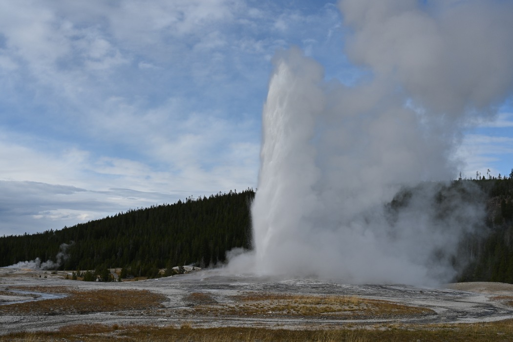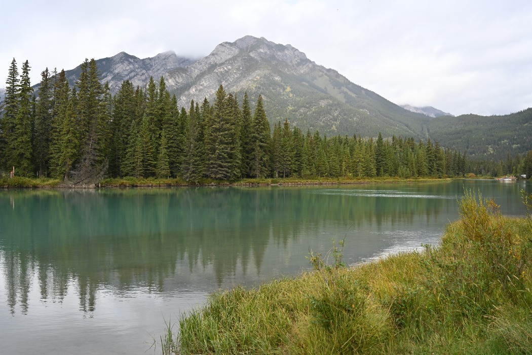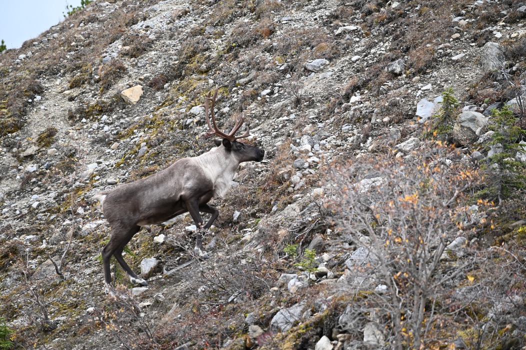 Manch einer steht aber auch frei, so wie hier auf dem Aussichtsberg Millenium Dome. Durch die verrauchte Luft kann man gerade so eben links im Bild die Ortschaft sehen und erkennen, wie dort der Klondike River in den Yukon River mündet: