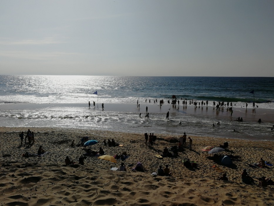 das 4. Bild ist so ein Bild mit vielen Leuten, dabei konnte man nur in diesem Abschnitt schwimmen, wegen gefährlichen Strömungen und ganz wildem Meer !!!