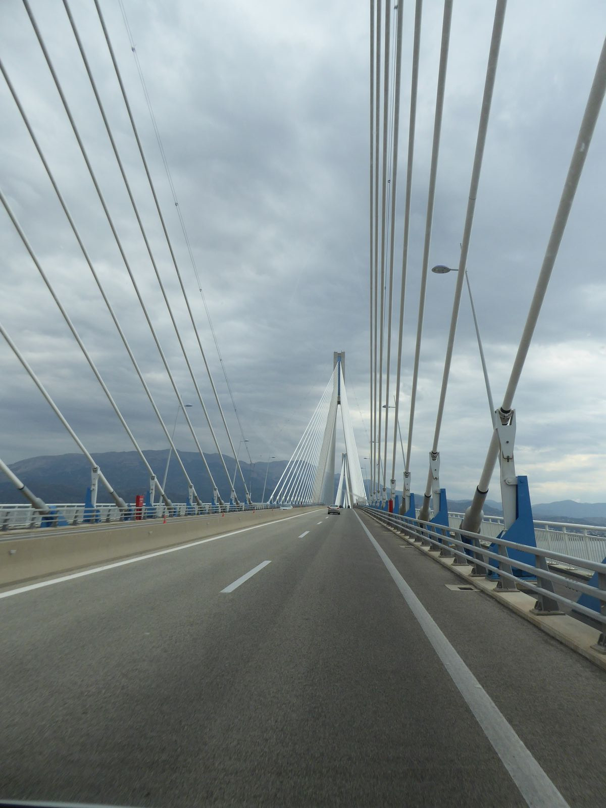 Das ist die Brücke bei Patras wo das Festland mit dem Peleponese verbindet .
