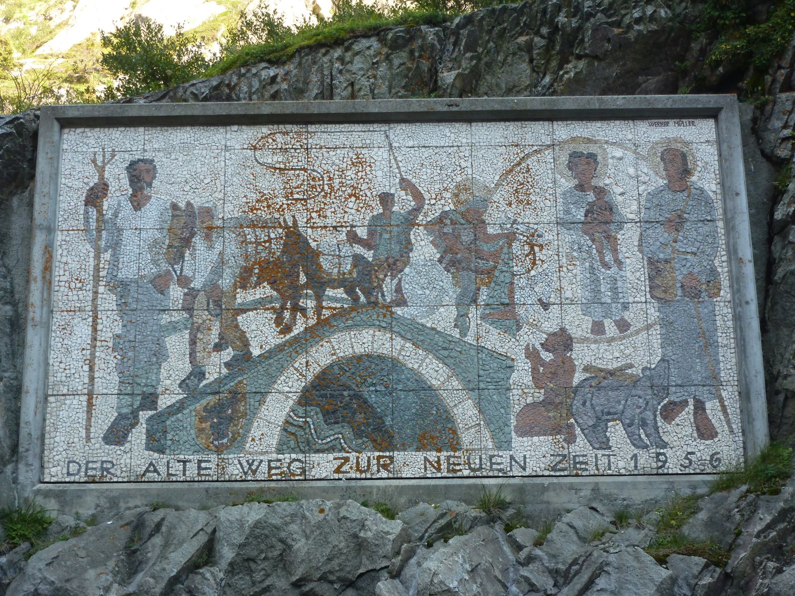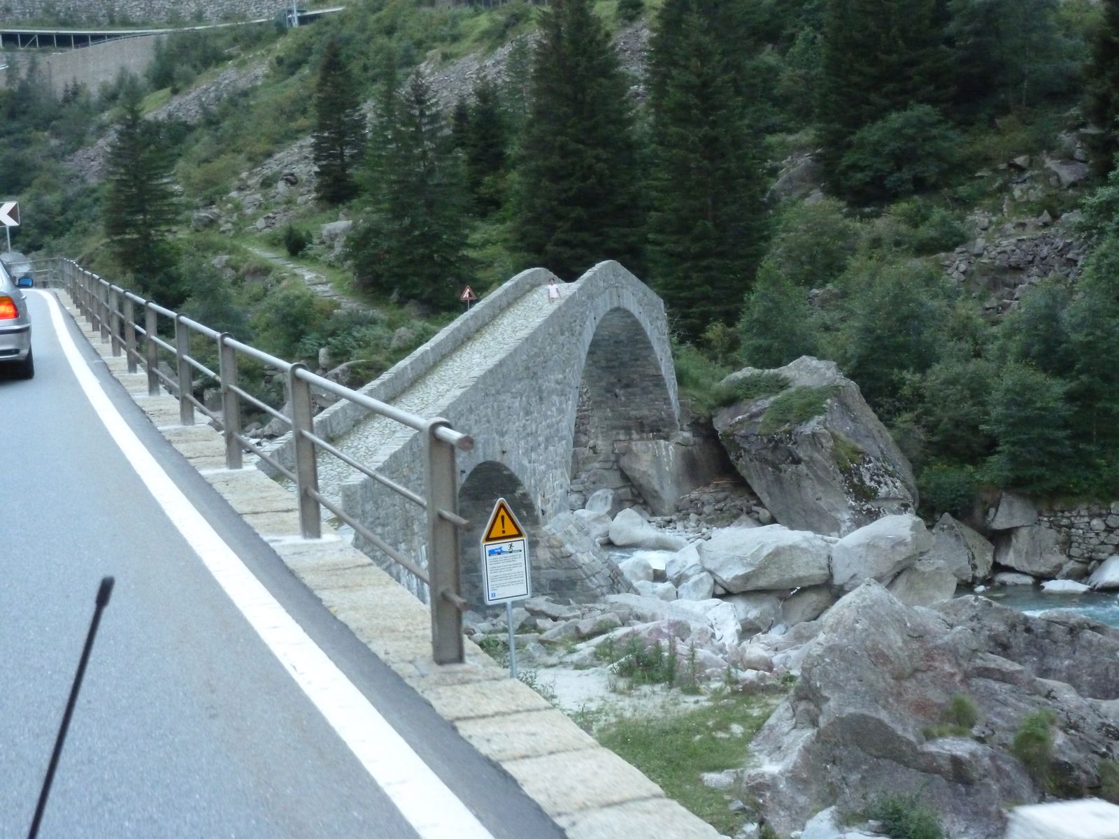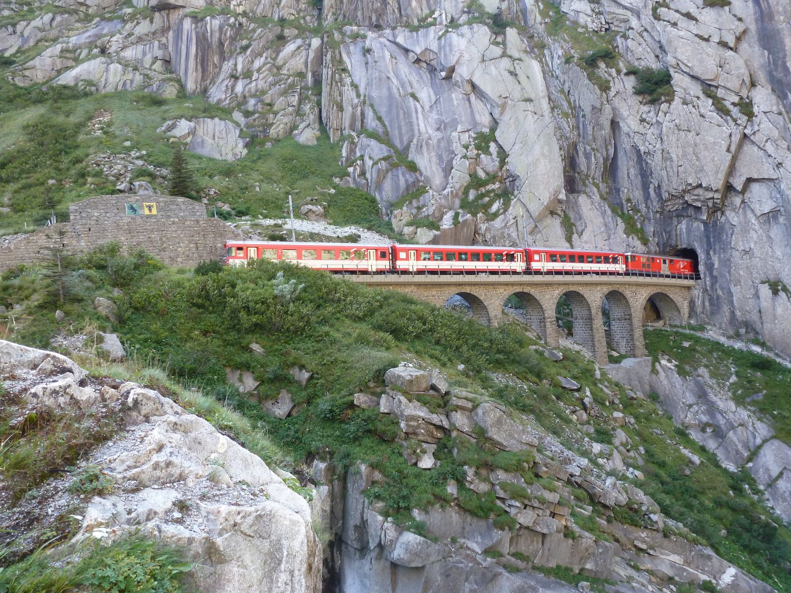 die Teufelsbrücke mit der Schöllenenschlucht am Gotthard , war Jahrelang eine Baustelle und sollte jetzt fertig sein, lohnt sich zu bewandern !!! den Tunnel mit dem Zug gehört zum Wasserfall weiter oben..... versuche noch ein Bild zu finden.