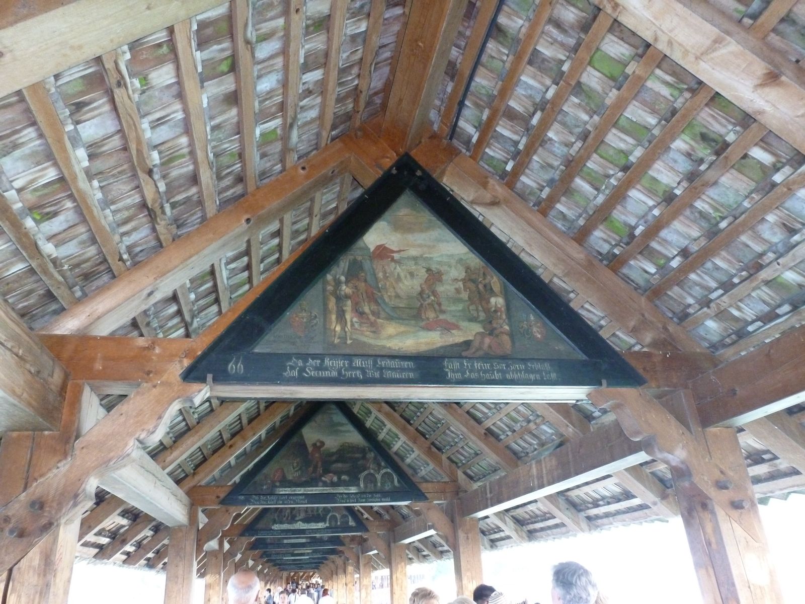 die alte Holzbrücke genannt Kapellbrücke von Luzern ..... 1977 total abgebrannt und wieder aufgebaut !!