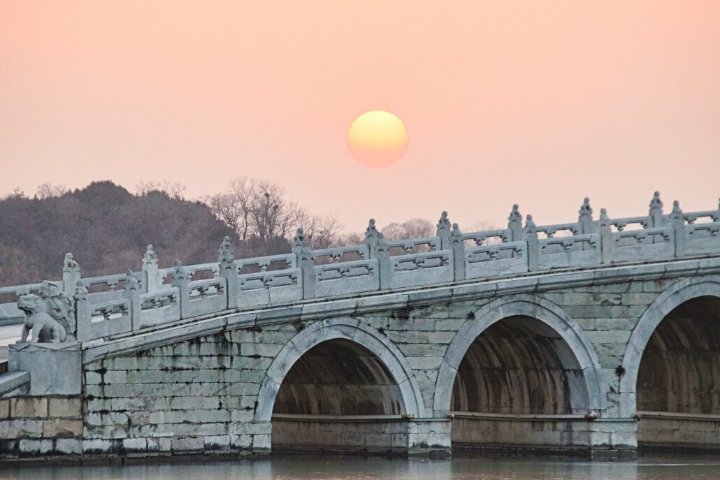 Heute nicht als Rätsel (wäre sowieso supereinfach), sondern einfach so, weil so schön: Die 17-Bogen-Brücke im Pekinger Sommerpalast. Zur Wintersonnenwende werden die Bögen von der tiefstehenden Sonne für etwa 20 Minuten so beleuchtet, dass sie von innen heraus zu glühen scheinen. Eine Freundin war vorgestern schon da und hat mich vorgewarnt: Brücke und Insel sind gesperrt, das wird nix mit dem Glühen, dafür ist das total voll und man wird als Ausländerin selbst wieder zum Motiv. Letzteres ist mir eh egal, das ist geben und nehmen (denn inzwischen fotografiere ich zurück!), rechtlich ist das mit der Personen-Fotografie hier massiv entspannter als in Deutschland oder Kanada... Solange ein Minimum an Respekt gewahrt wird, warum denn nicht? Immerhin habe ich jetzt auch eine neue WeChat-Freundin, die vor 20 Jahren in Münster Physik studiert hat.