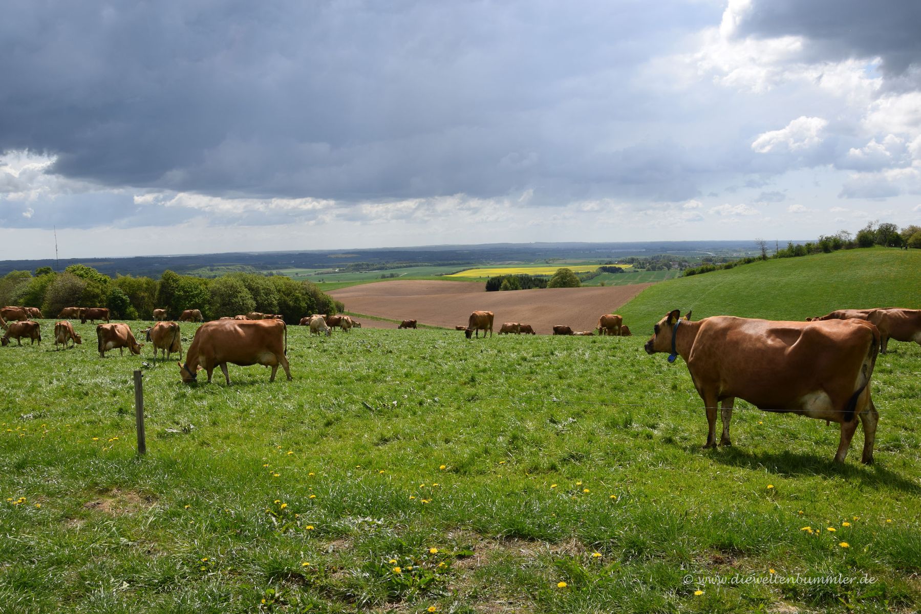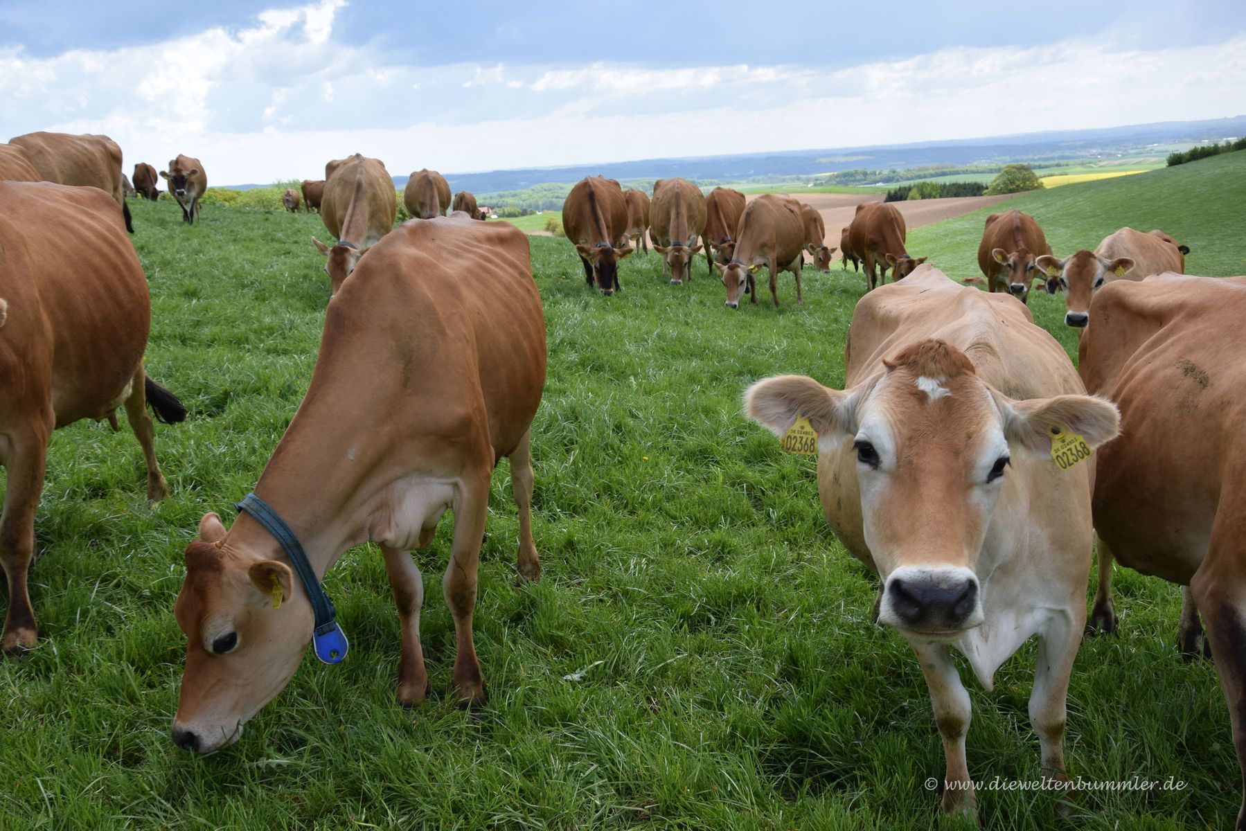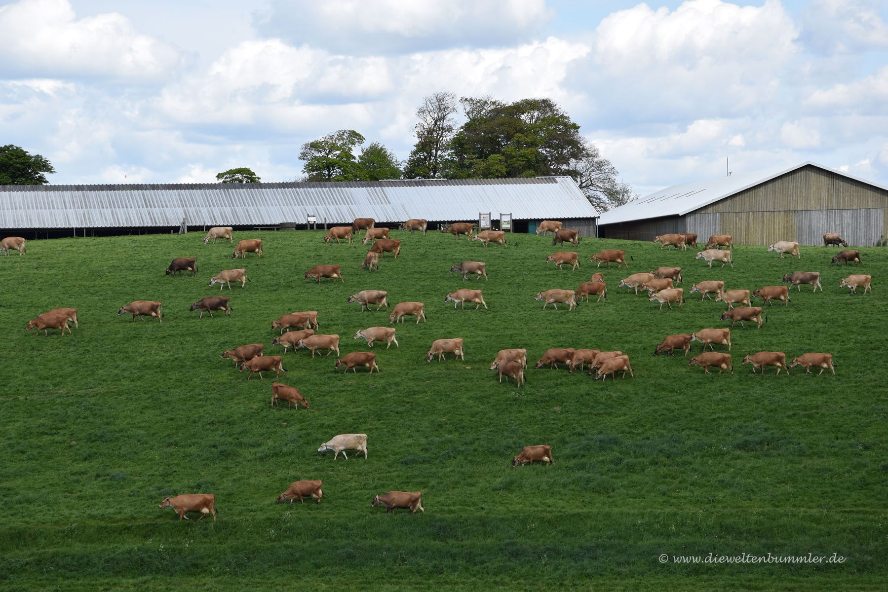 … die Personalausweise der Kühe an den Ohren, lässt mich darauf schließen, dass wir uns — sollten sich die Kühe nicht grade trotz der Corona-Zeiten auf einem Auslandsurlaub befinden — das Foto bei unseren nördlichen Nachbarn in Dänemark aufgenommen wurde.