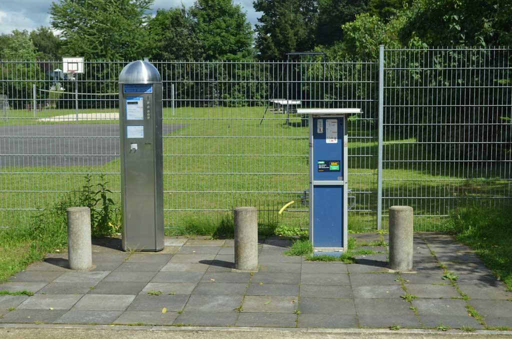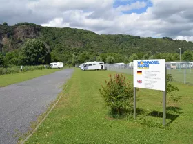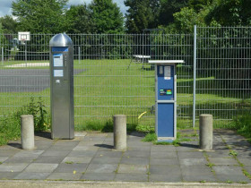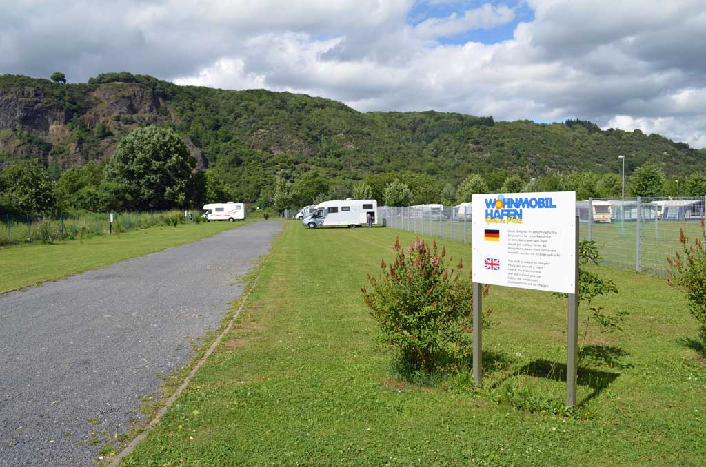 Der Platz befindet sich in schöner Lage und nur vom Rheinradweg getrennt, direkt am Rhein. Rechts neben dem Zaun sieht man den Campingplatz, bei dem man notfalls auch bezahlen kann, wenn man kein passendes Kleingeld für den Ticketautomaten hat. Erlaubt sind max. 5 Übernachtungen, die jeweils 12 Euro kosten. Die Entsorgungsstelle befindet sich direkt vor den beiden Säulen: