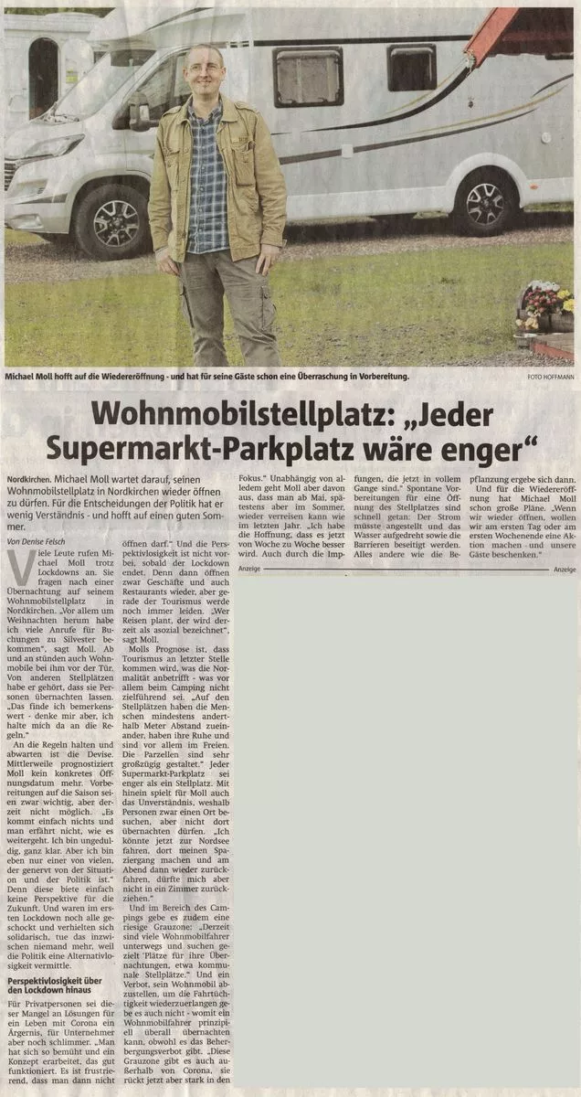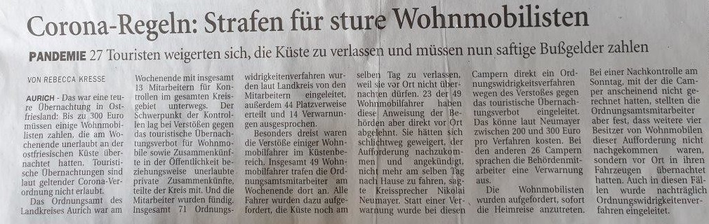 Ich hatte gestern ein Interview mit den Ruhrnachrichten. Da habe ich das Thema auch angesprochen, weil in der Nachbarstadt der kommunale (!) Stellplatz ständig voll ist. Im Gespräch habe ich den Ort auch namentlich erwähnt. Gerade als Stadtverwaltung sollte man sich vielleicht auch mal an die Vorgaben halten. Mal sehen, was die daraus machen werden.
