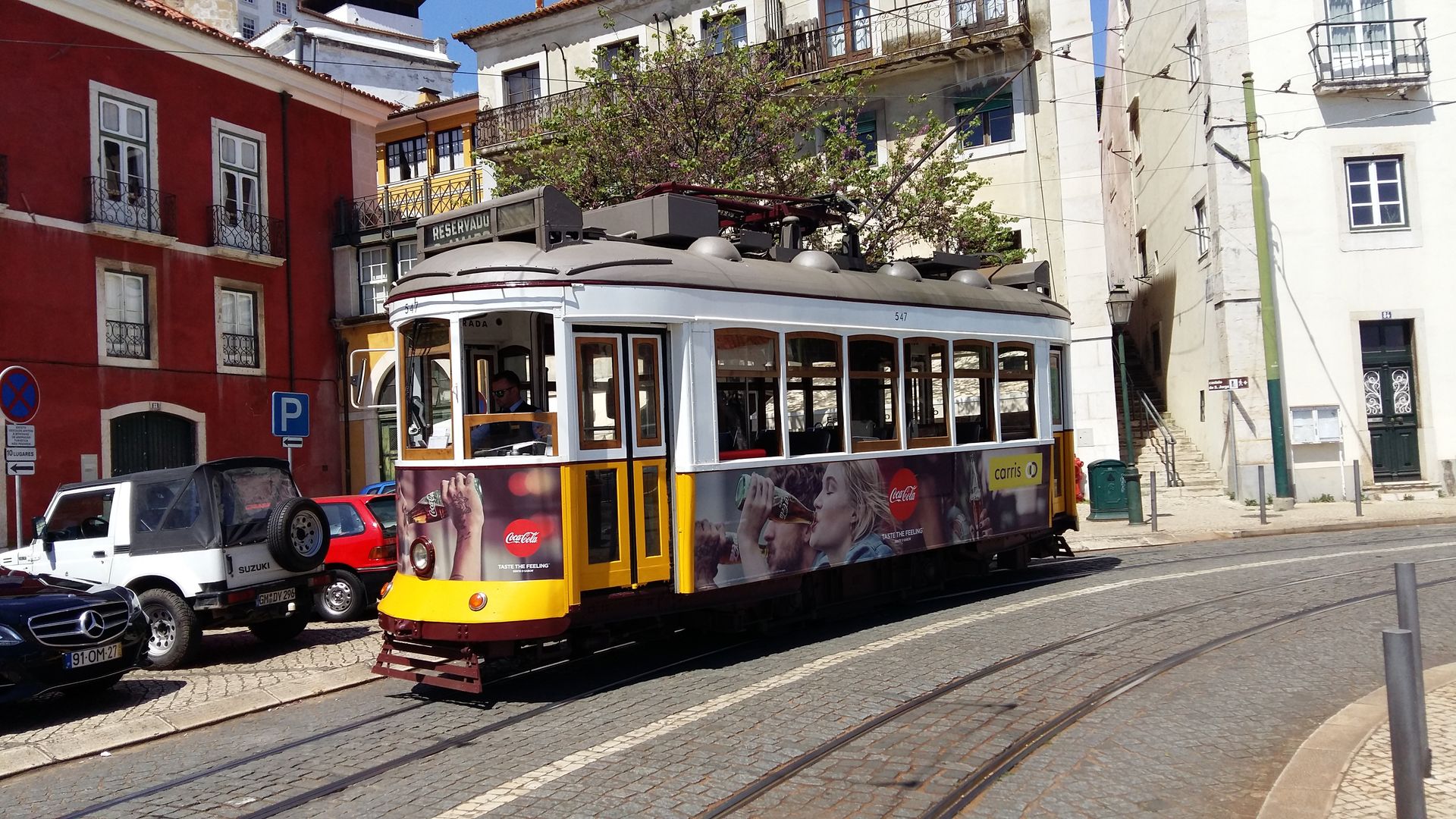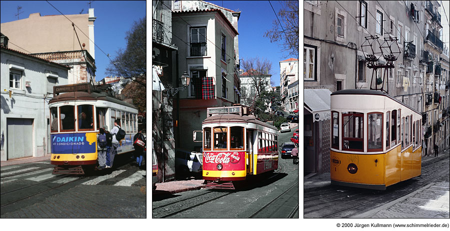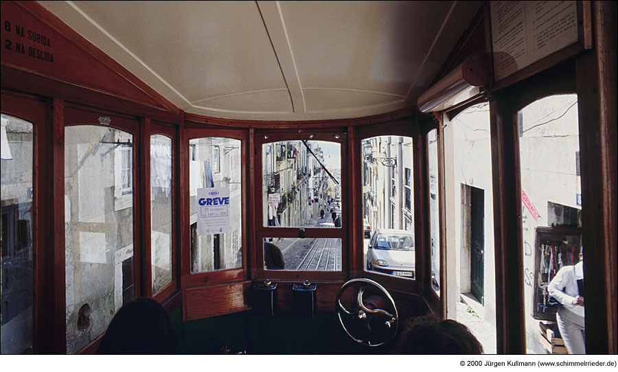Ich weiß nicht, wie es heute in Lissabon aussieht, und ob es dort in der jüngeren Bevölkerung immer noch üblich ist, sich außen an Straßenbahnen klammernd mitzufahren. Alle Fotos wurden analog auf einem Kodak E 100S Diafilm aufgenommen.