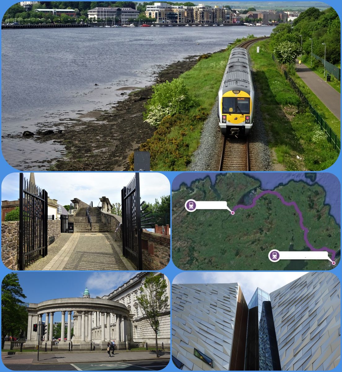 Der Zug ist am Bahnhof in Londonderry (im protestantischen Stadtteil) abgefahren. Das Bild habe ich von der Friedensbrücke (das Wahrzeichen der Stadt) geknipst. Weiters ist die Stadtmauer von Derry zu sehen, auf der man rundherum gehen kann und interessante Ausblicke bietet.