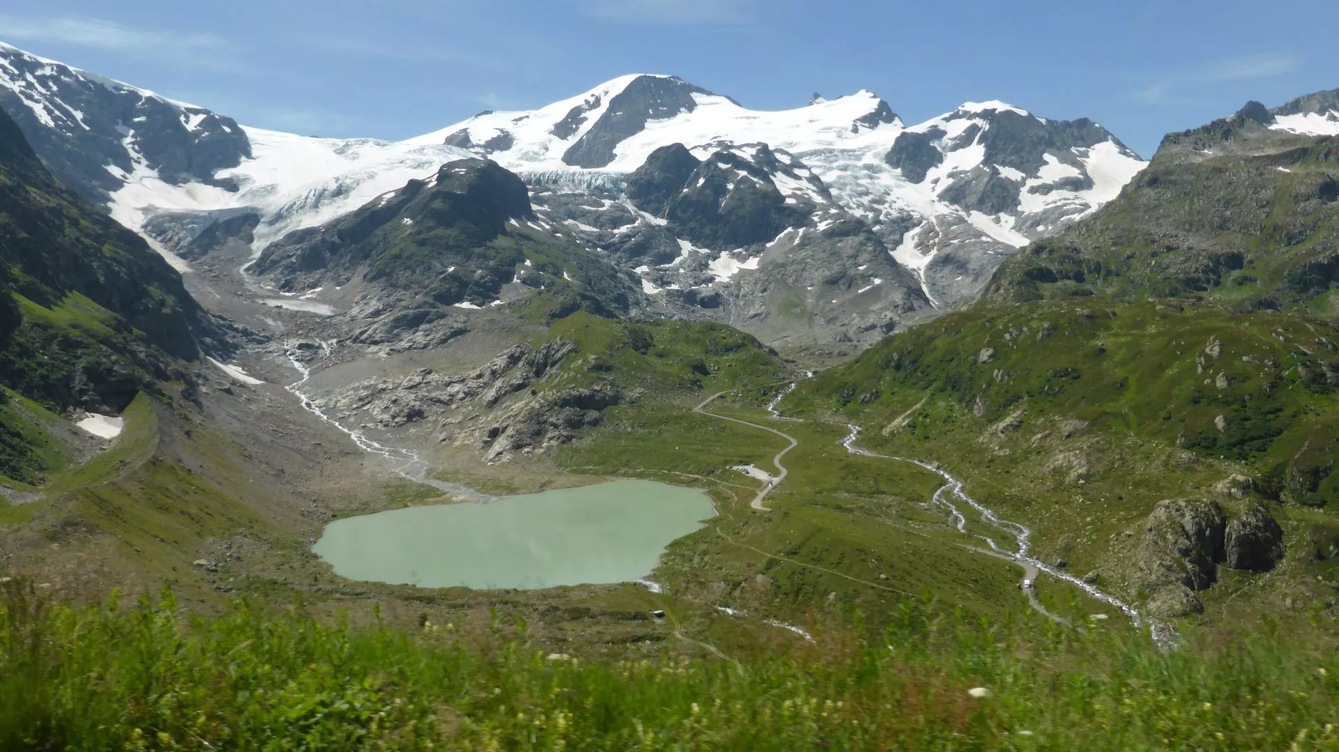 Das dürfte der Lago di Livigno sein, den man auf der Straße nur durch den Munt-la-Schera-Tunnel erreichen kann.