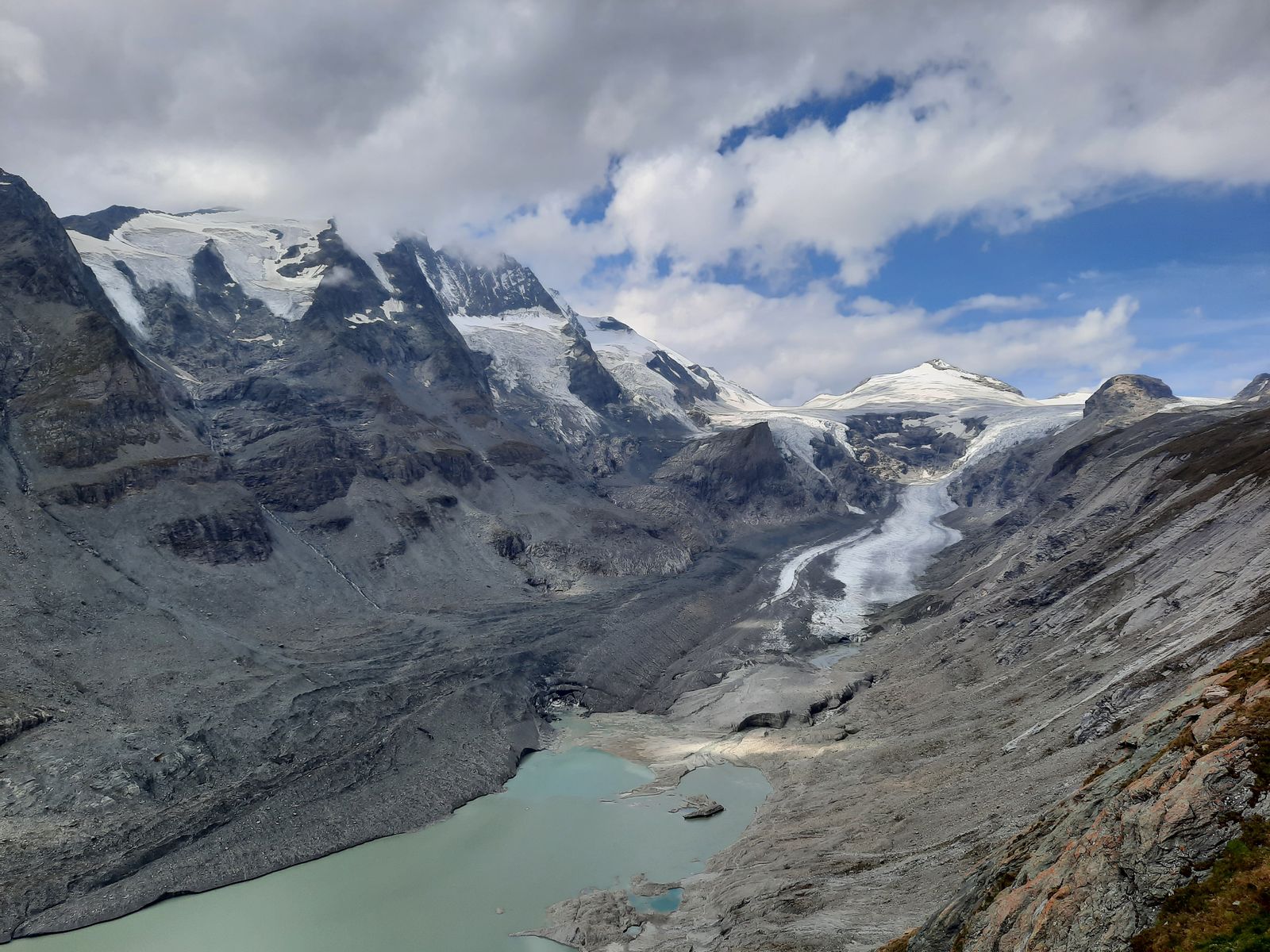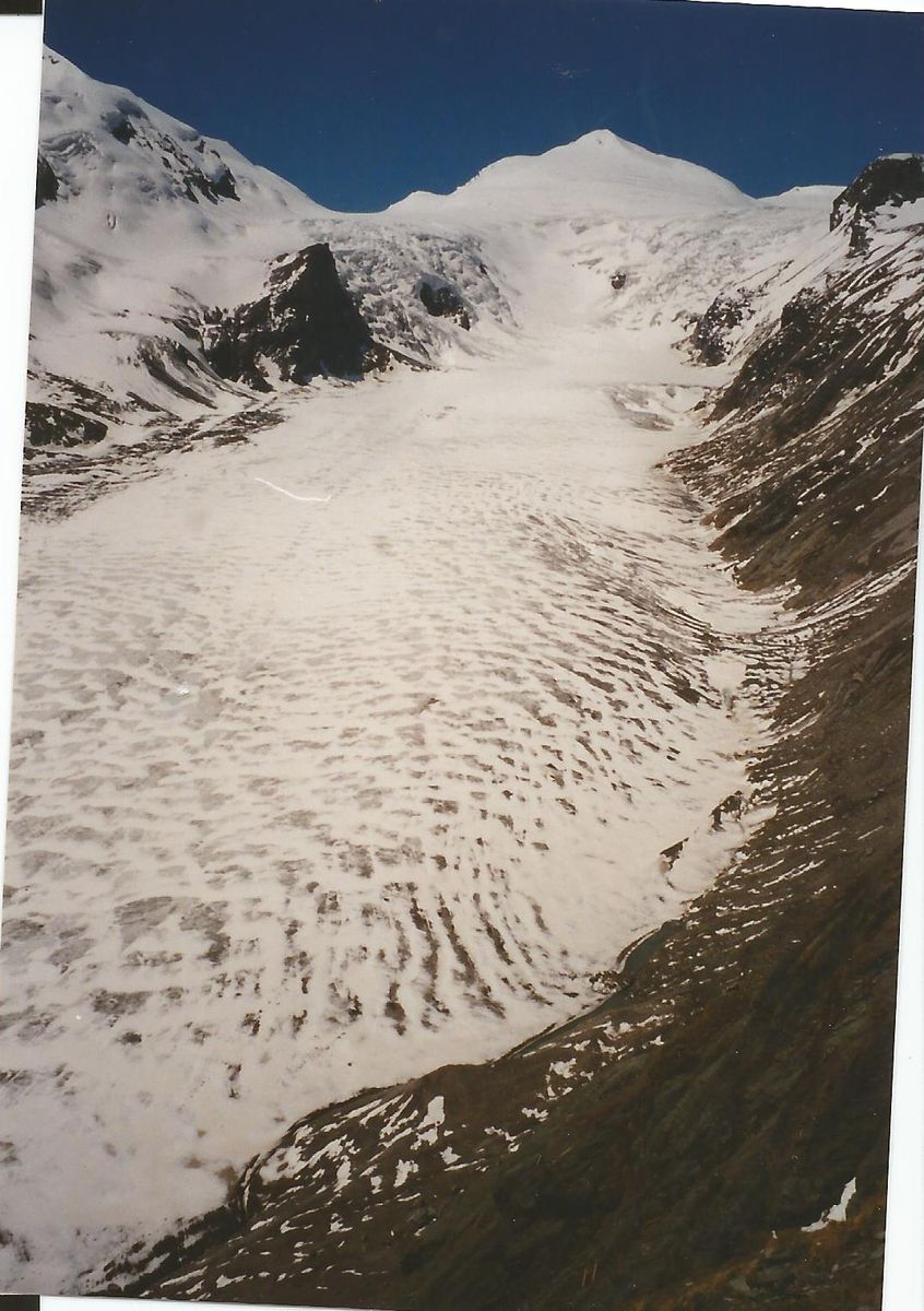 Pasterze mit Blick auf Gletscher, und der ging damals noch etwas weiter runter, als die rote Standseilbahn fuhr.