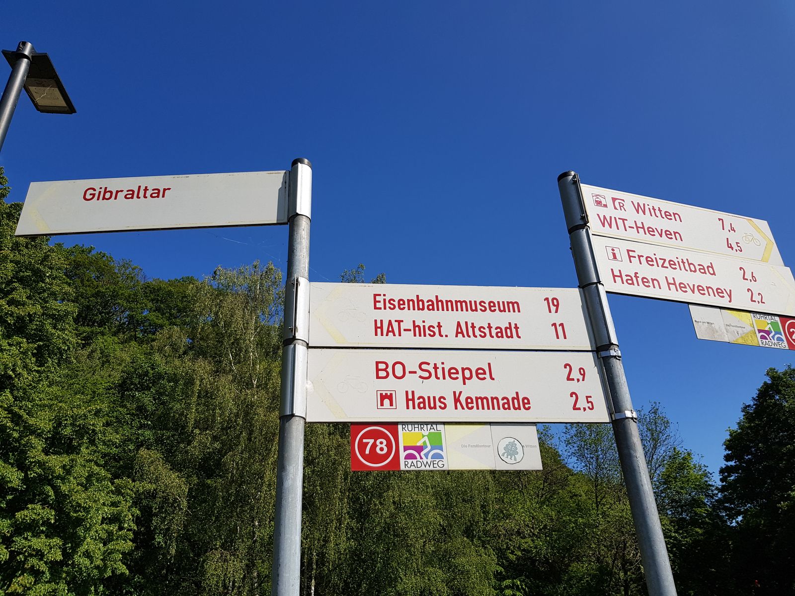 Und wie man sieht, ist Gibraltar sogar bei Hattingen und Bochum ausgeschildert.