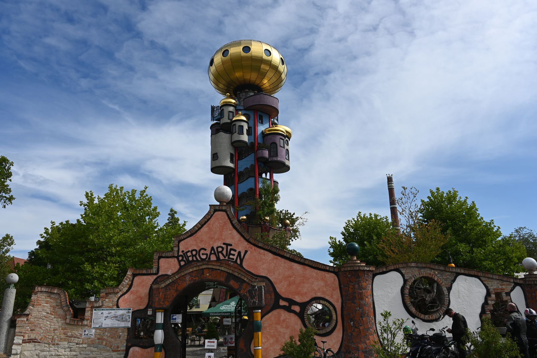 Da sag noch einer, die braunen touristischen Hinweisschilder bringen nichts. Da waren wir letztens auf dem Weg nach Kelheim und sahen eines dieser Schilder mit dem Hinweis auf den Kuchlbauer-Turm von Friedensreich Hundertwasser in Abensberg. Hundertwasser kennen wir und seine Bauwerke haben wir schon oft besucht und fotografiert. Nur dieses sagte uns nichts, genauso wie der Ort Abensberg - nie gehört. Also Autobahn verlassen und ab in den Ort.