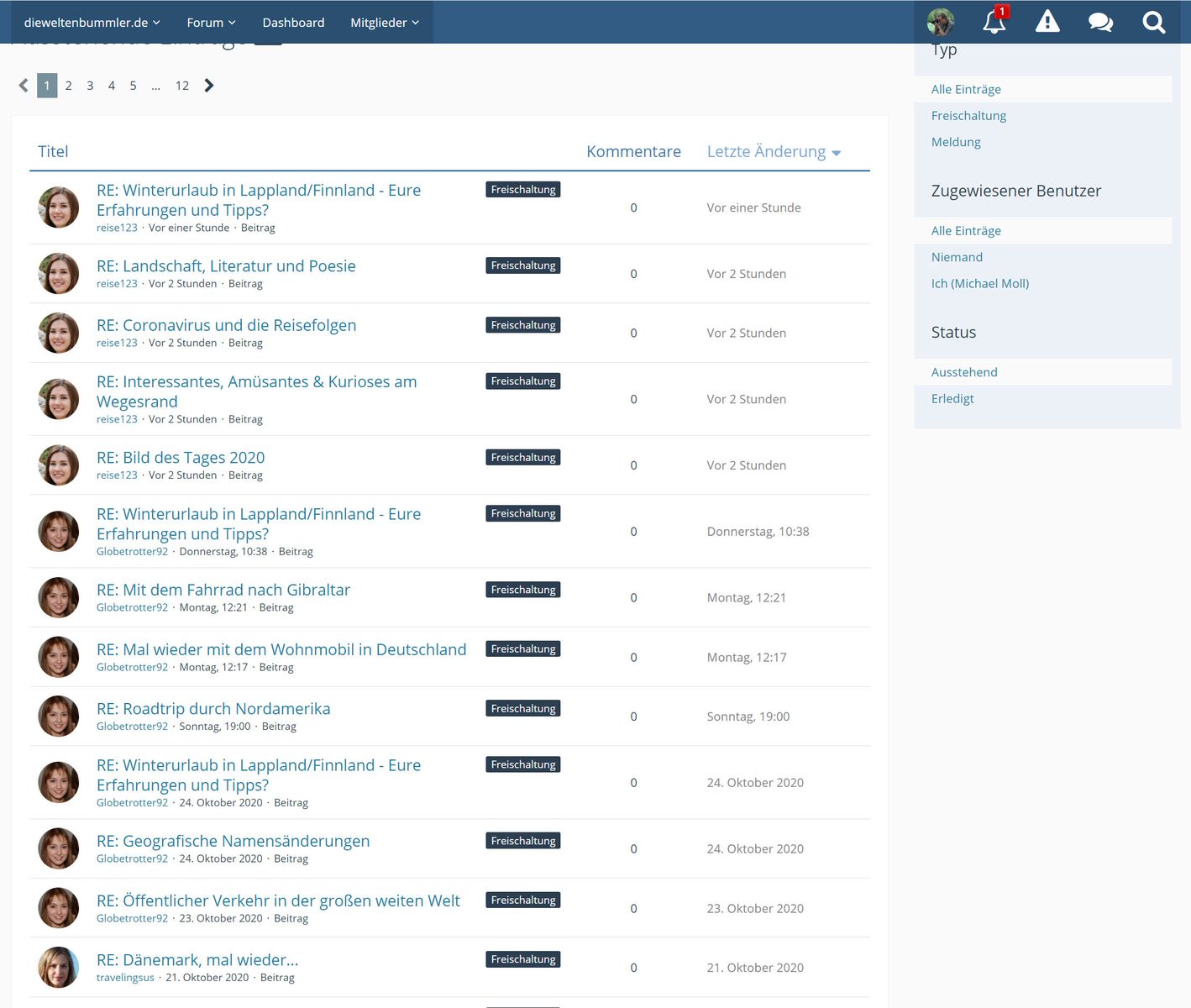 Hier mal ein Screenshot von den Beiträgen, die ich freischalten müsste: