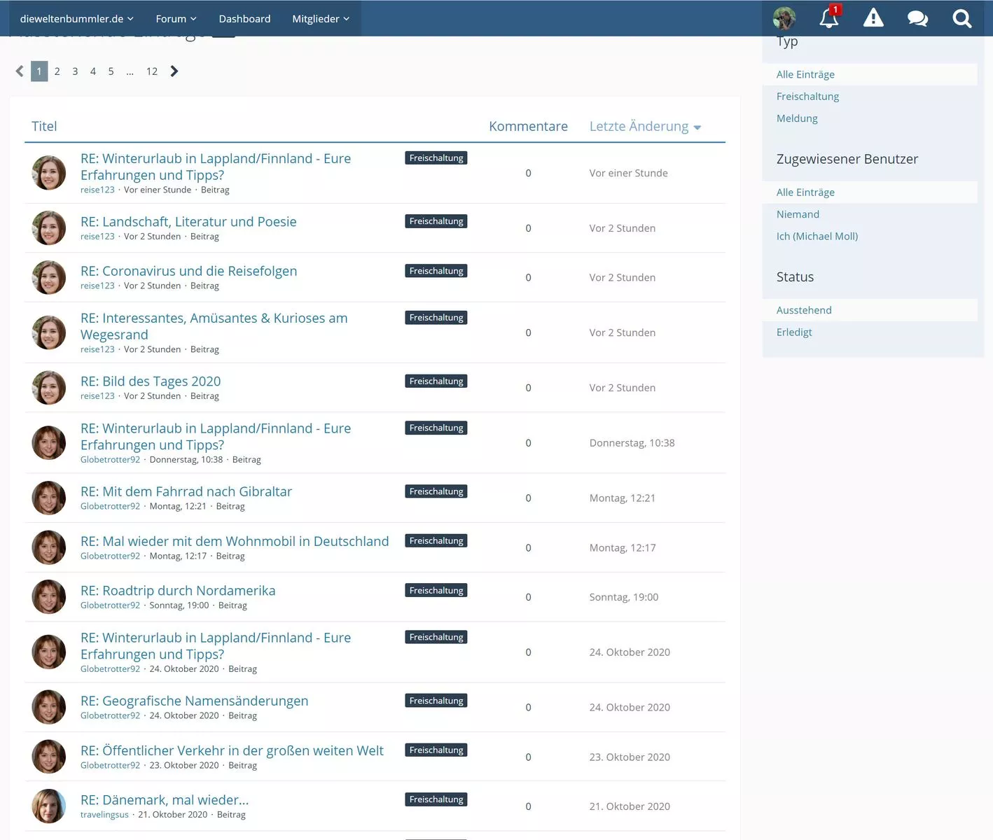 Hier mal ein Screenshot von den Beiträgen, die ich freischalten müsste:
