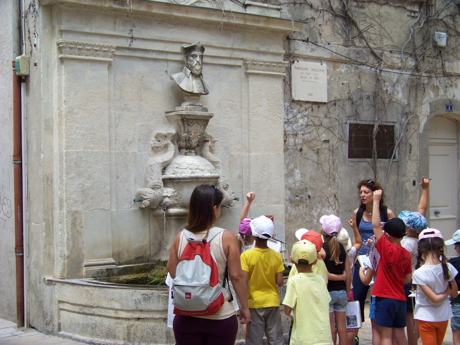 Leider hat die Schulstunde noch länger gedauert, so konnte ich den Brunnen nur "mit den Schülern" aufnehmen.