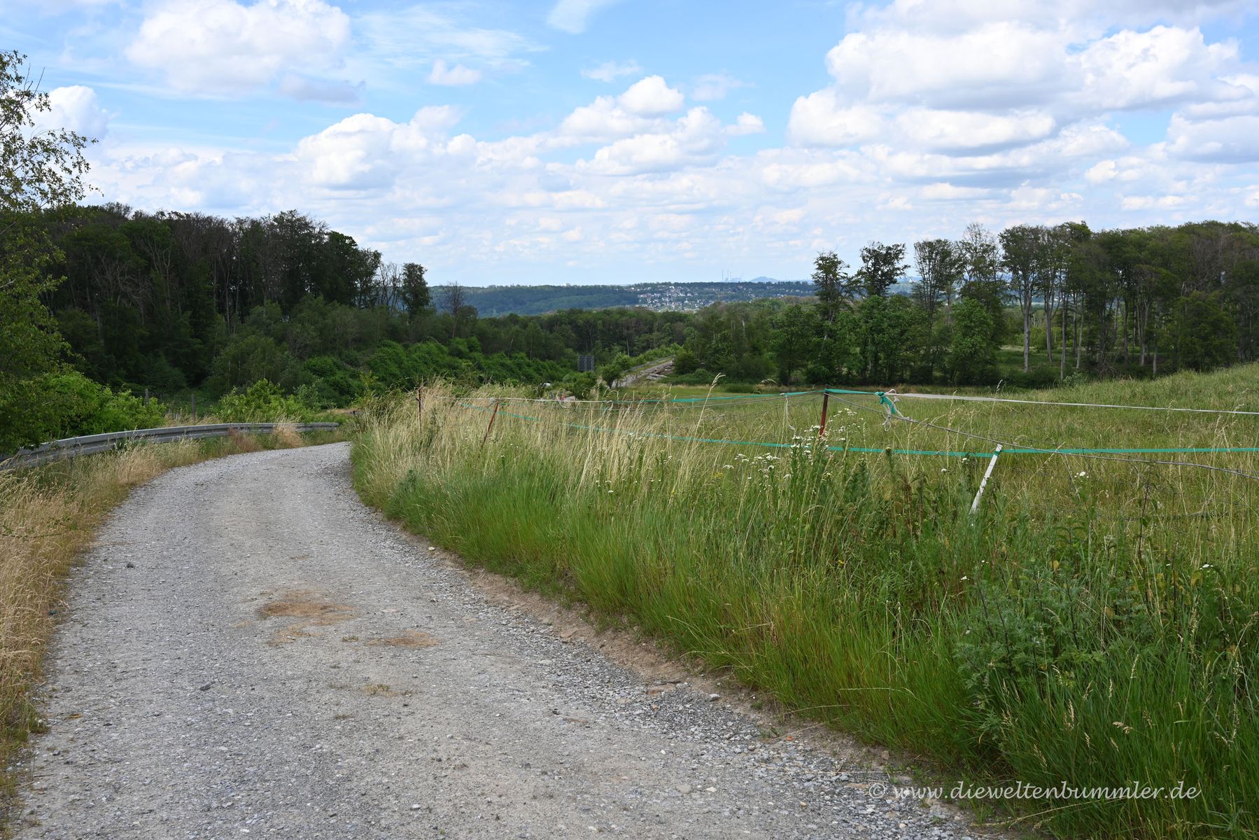 In der Hoffnung auf Alex' Einverständnis gebe ich den Punkt bzw. den Ball weiter an Michael, der sogar die Lage erkannt hat. Und ja, im Bild blickt man Richtung Norden. Genau in der Bildmitte, nur schwer zu erkennen, ist die Autobahn 44 im Essener Süden. Die Halde im Hintergrund müsste, wenn ich jetzt richtig liege, in Gelsenkirchen sein. Das heißt, man schaut einmal über die Stadt Essen hinweg.
