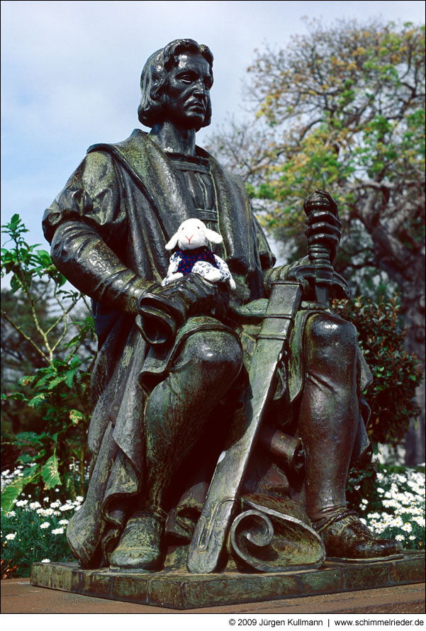 Das Bild ließ sich anhand des nicht versteckten Textes unter der Figur schnell finden. Der dargestellte Herr ist Johann Andreas Eisenbarth, der zwar nie einen Doktortitel führte, aber der Nachwelt trotzdem als "Doktor Eisenbarth" bekannt ist. Er starb 1727 in einem Gasthaus in Hannoversch Münden, das 1895 abgerissen wurde. An dem Nachfolgebau wurde dann die abgebildete Figur angebracht. Insofern ist die Formulierung "in diesem Hause..." strenggenommen höchstens halb korrekt.