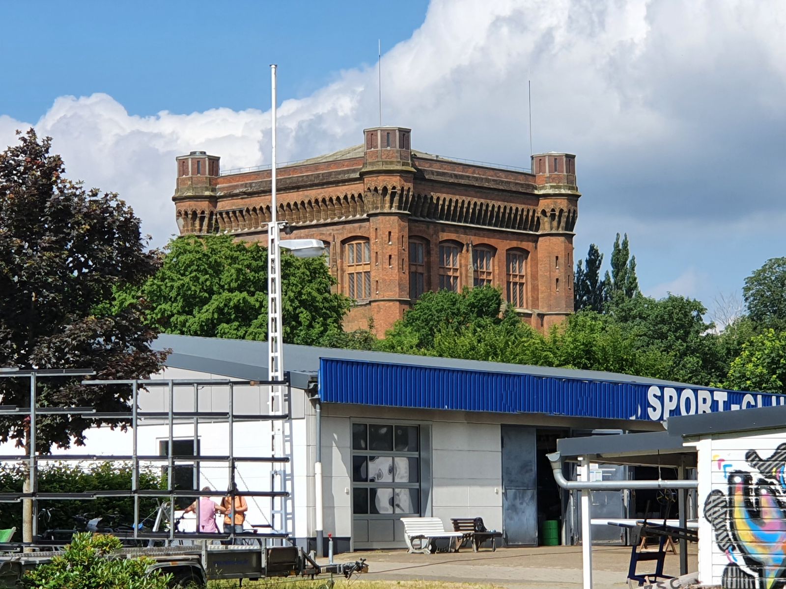 Das Bauwerk erinnert an die Malakow-Türme im Ruhrgebietsbergbau.