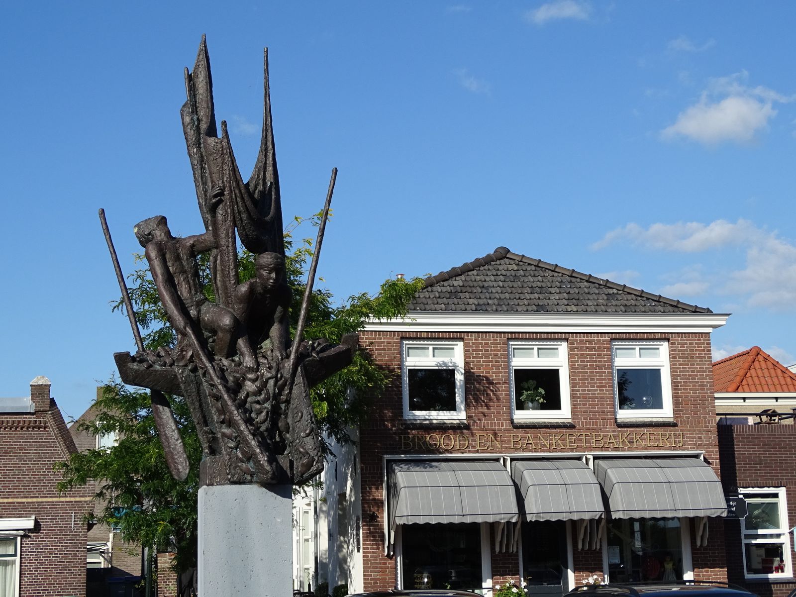 auch ohne den Tipp ist ersichtlich, dass es sich um eine Skulptur neben einer Bäcker- und Konditorei in den Niederlanden handelt. Des weiteren scheinen die dargestellten Herrschaften, wenn ich es in der Vergrößerung richtig identifiziere, irgendetwas mit Fischen zu veranstalten, so dass der Ort irgendwo an der See stehen könnte. Mehr kann ich allerdings nicht zur Lösung beitragen, denn die Skulptur habe ich bei der Bildersuche im Internet nicht gefunden.