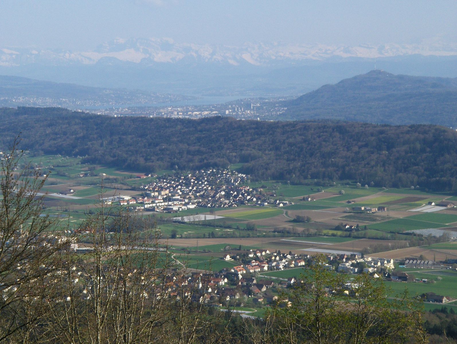 Im Vordergrund des Rätselbildes sieht man den Ort Dänikon, und dahinter erstreckt sich natürlich die Stadt Zürich, mit dem Zürichsee dahinter, dem Üetliberg auf der rechten Seite des Bildes und den schneebedeckten Glarner Alpen im Hintergrund.