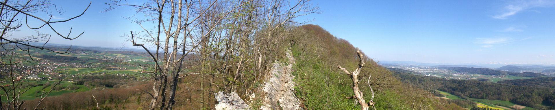 In gewisser Hinsicht habt ihr beide Recht: Entstanden ist das Bild auf einer Wanderung über den Lägerngrat, der sich schnurgerade zwischen Regensberg und Baden erstreckt und die Kantonsgrenze zwischen Zürich und dem Aargau kreuzt. Übrigens ein geologisch hochinteressanter Berggrat - quasi eine hochkant stehende Felsplatte in der Landschaft: