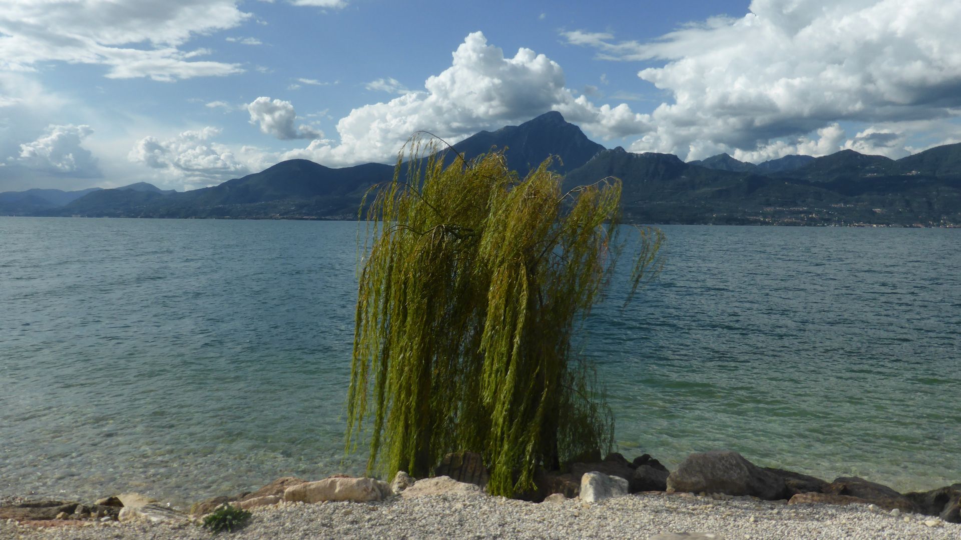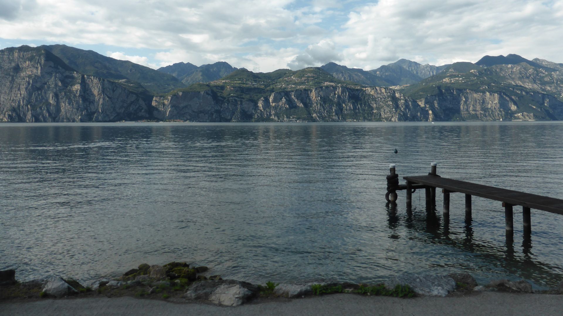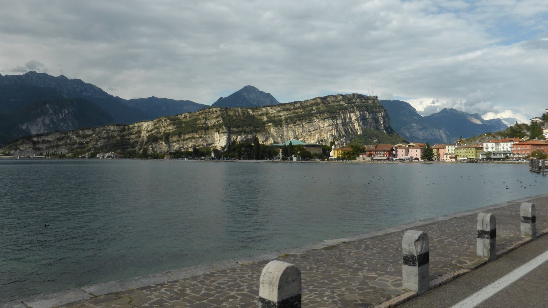 um Riva del Garda mit ein bisschen Regenschauer und trotzdem kamen wir trocken in Peschiera del Garda an