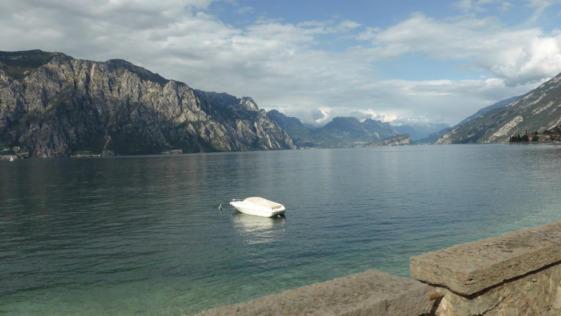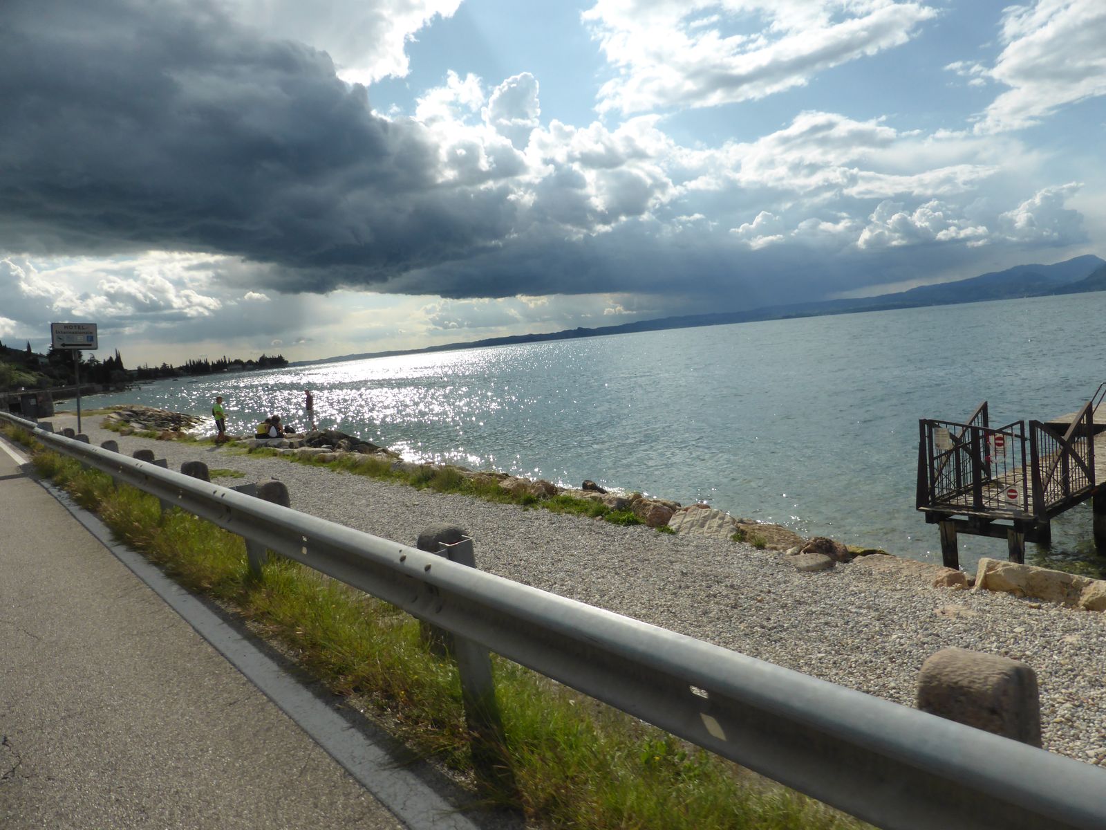um Riva del Garda mit ein bisschen Regenschauer und trotzdem kamen wir trocken in Peschiera del Garda an