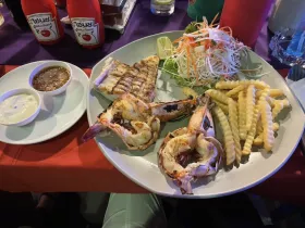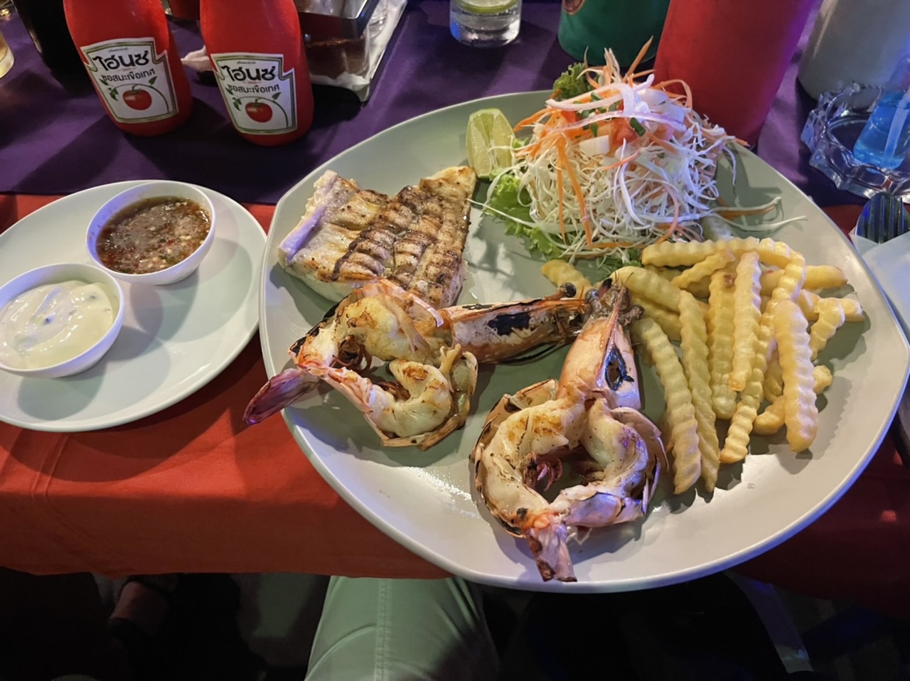• Auf Ko Samui / Thailand waren wir schon öfter und haben diesmal immer im gleichen Restaurant gegessen: zb Haifisch mit Tigerprawn.