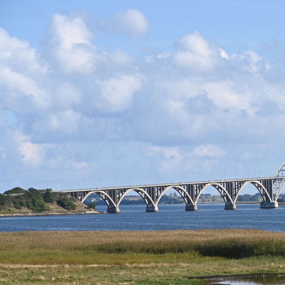 Die Dronning Alexandrines Bro (Königin-Alexandrine-Brücke), die die dänischen Inseln Møn und Seeland verbindet.