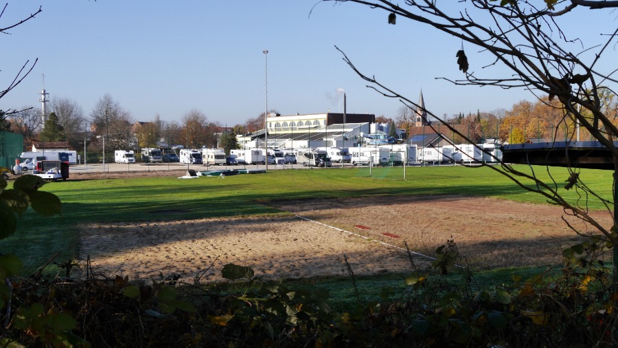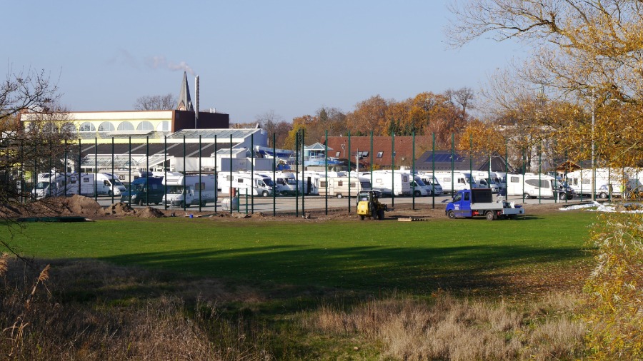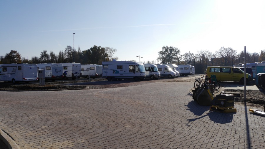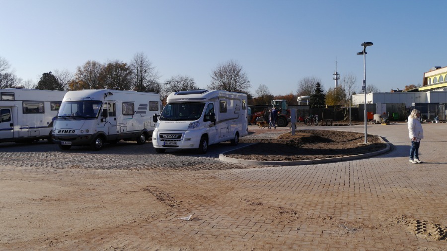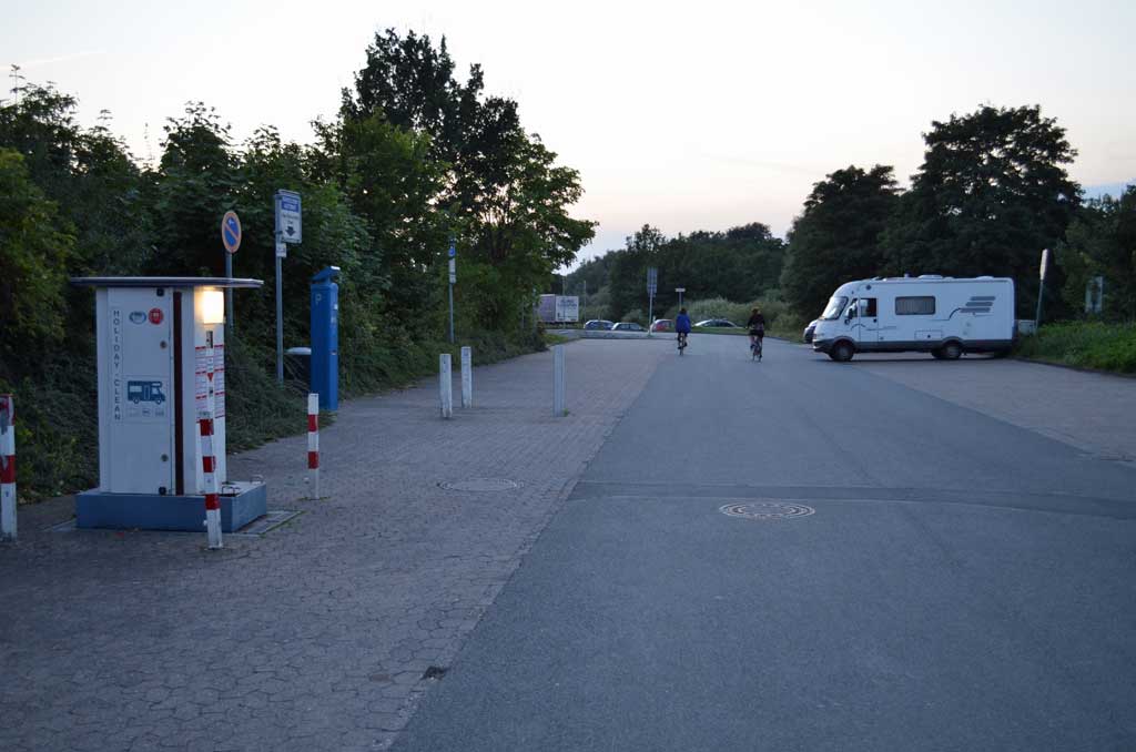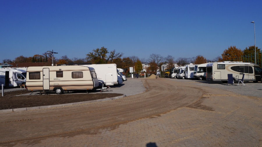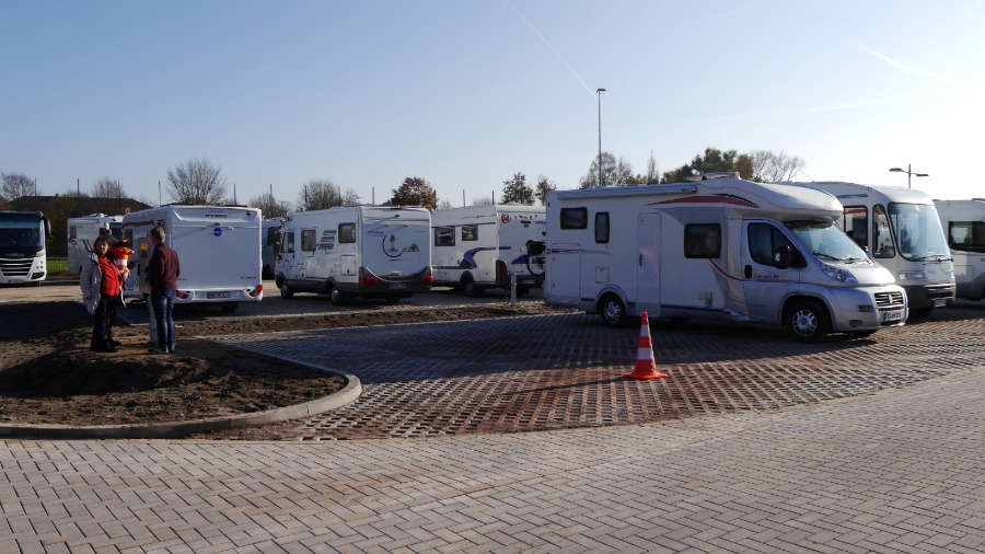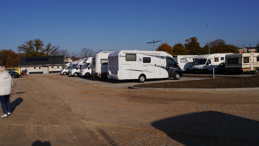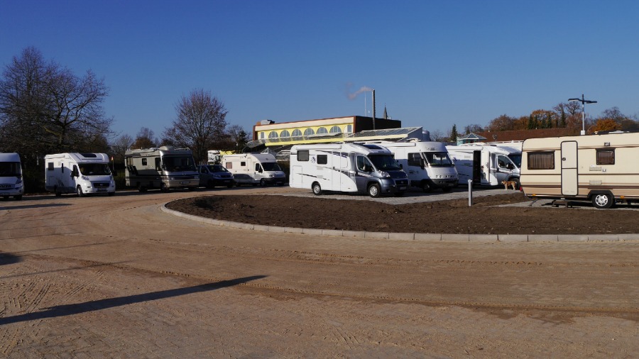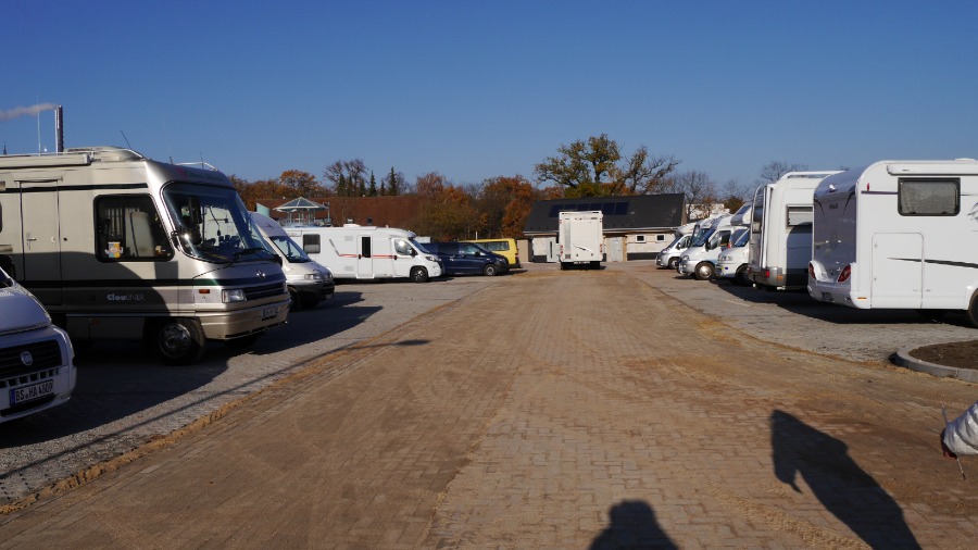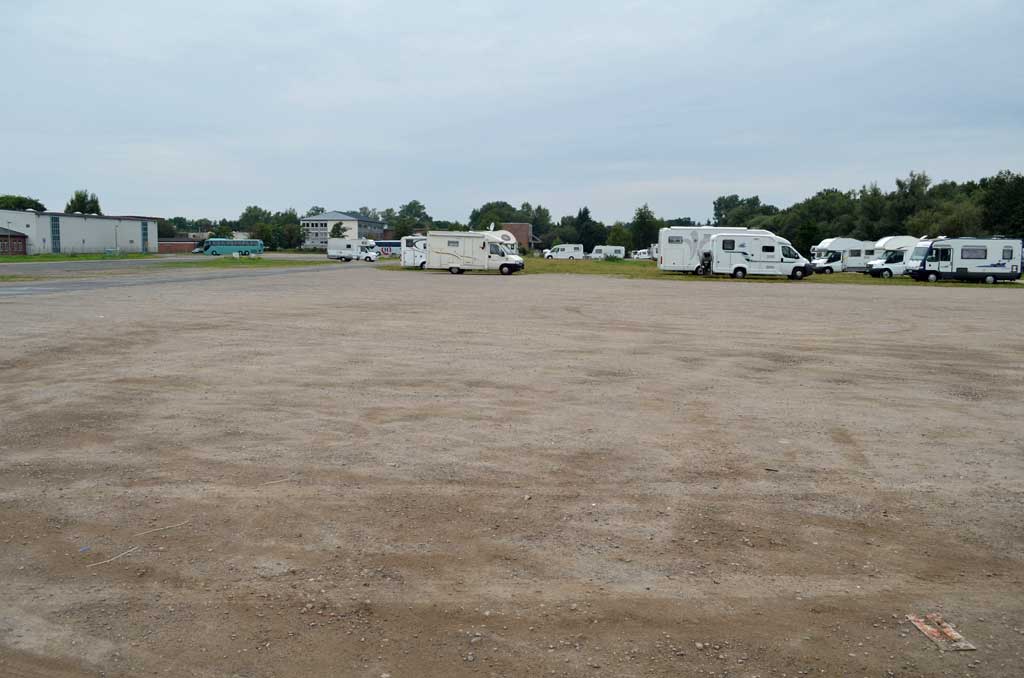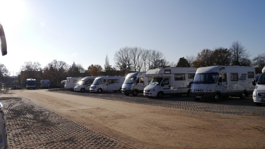 Der Platz ist rund 200 Meter lang und mindestens 70 Meter breit. Die Wohnmobil standen so wie auf dem Foto. Ich habe mich abseits an den Rand gestellt und in Ruhe meine Satellitenschüssel auf mein Fotostativ gestellt, direkt neben das Auto. Irgendwann am späten Abend, mitten im Film ist plötzlich das Bild weg. Da hat sich ein Neuankömmling direkt neben unser Womo gestellt und der Satellitenschüssel den Blick genommen. Ich muss dazu sagen, dass 30 Meter rechts und auch 30 Meter links neben mir Platz war. Aber der werte Herr musste unbedingt 1,50 Meter neben mir parken. Als ich ihn darauf ansprach, dass ich nicht so auf Kuschelcamping stehe und gerne den Film weiter sehen möchte, streckte er sich genüsslich und meinte, dass er den anderen Wohnmobilen auch lieber fern bleibt. Er würde es auch nicht mögen, wenn man sich so nah steht. Hallo? Warum dann zu uns? Also setzte er den Wagen um: Auf die andere Seite unseres Autos. Na ja, egal. Der Platz ist auf jeden gut. Es gibt wohl noch einen zweiten in Celle, aber ich glaube, der ist deutlich kleiner.