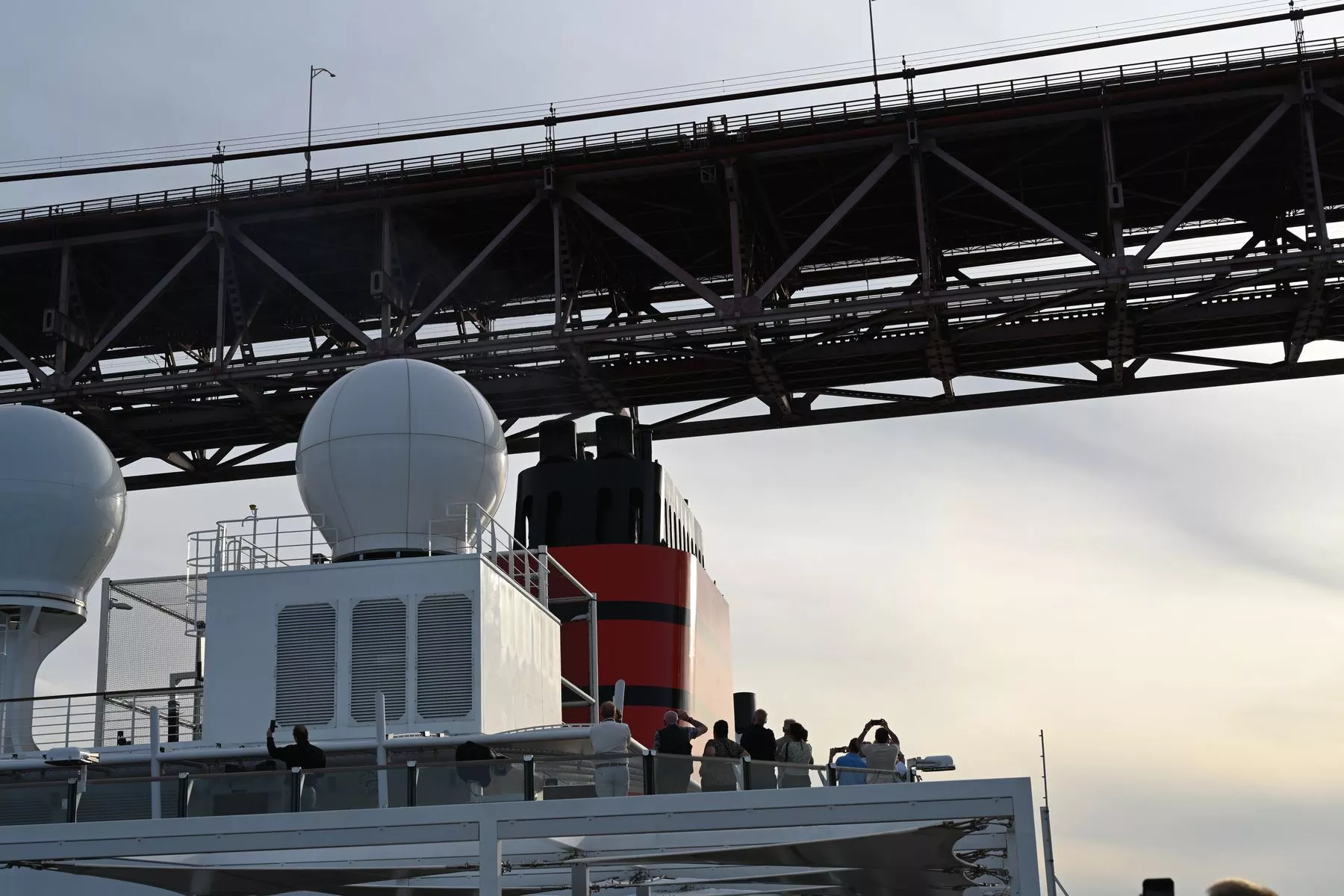 Hier wurden wir an unsere Fahrten nach New York erinnert, wenn die Queen Mary 2 knapp unter der Verrazzano-Bridge hindurch passt. Aber es ist eben die Queen Anne und die Ponte 25 de Abril in Lissabon.