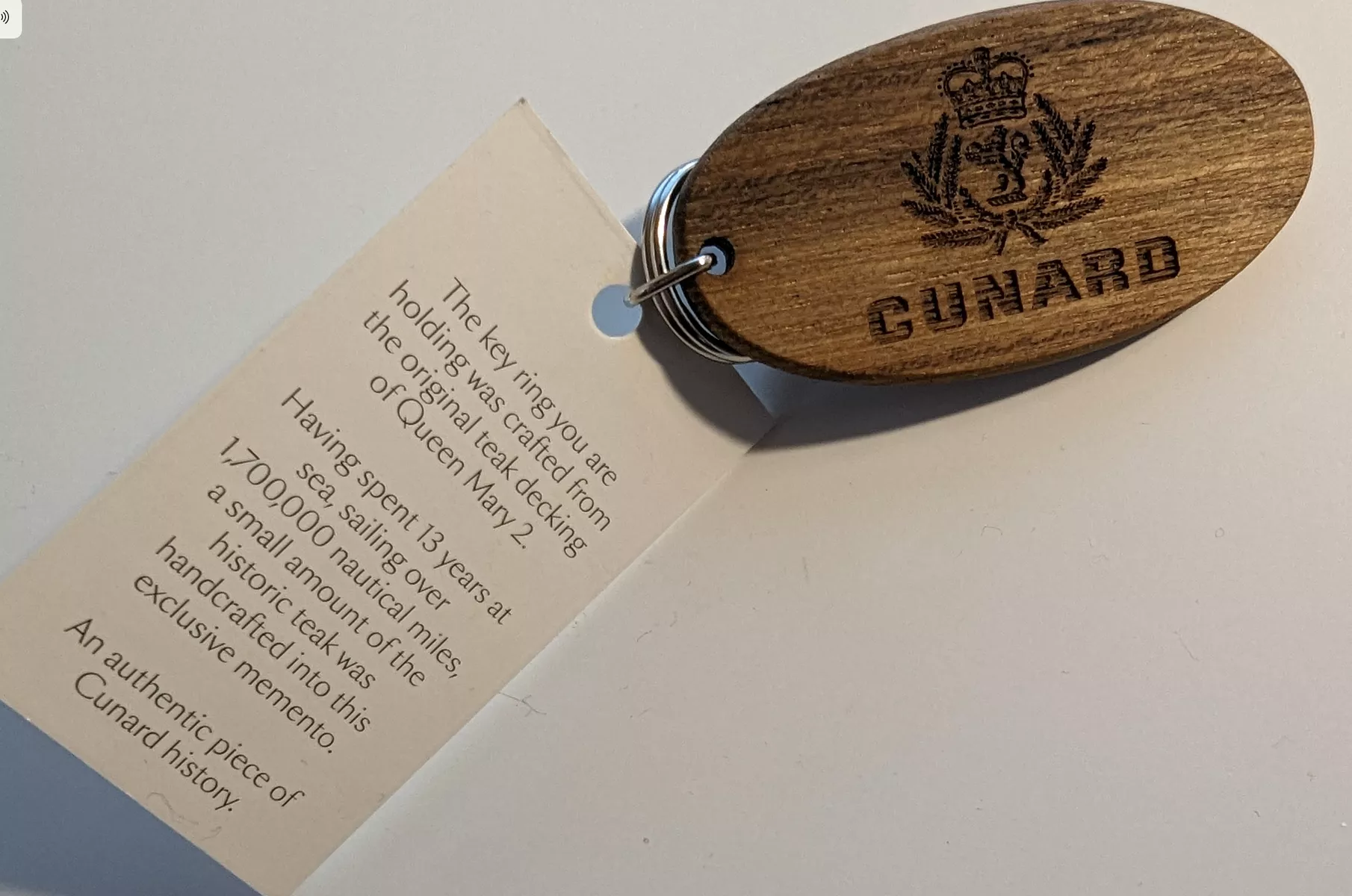 Als kleinen Gewinn gab es einen Schlüsselanhänger aus Teakholz der Queen Mary 2:
