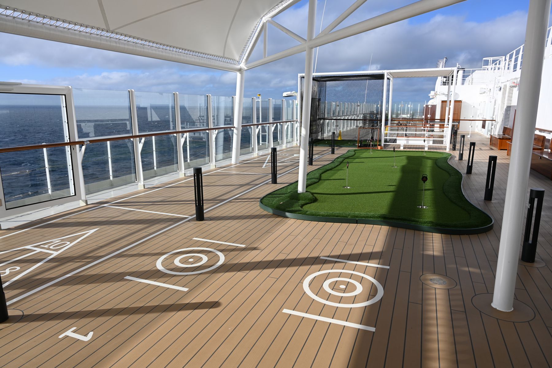 Minigolf, Shuffleboard, Deck Quoits (Ringe werfen) und Golf - alles da. Leider aber ohne unsere geliebten Turniere, bei denen man andere Passagiere kennenlernt und kleine Preise gewinnt. Das kennen wir anders und als wir das den Hostessen später auf der Queen Mary 2 erzählten, waren die selber ganz überrascht.
