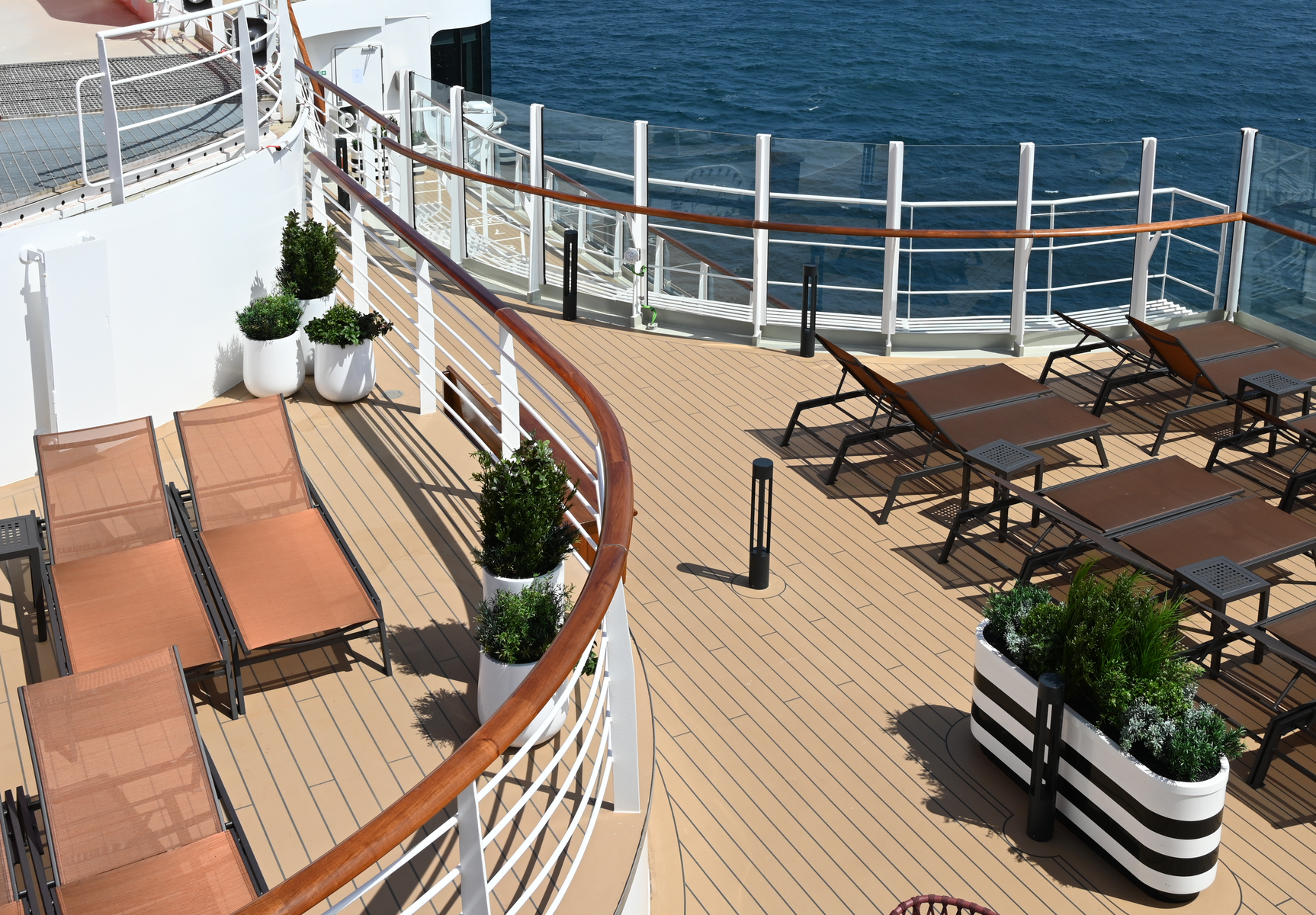 Auf der Queen Anne ist das Promenadendeck aber weitgehend zugebaut