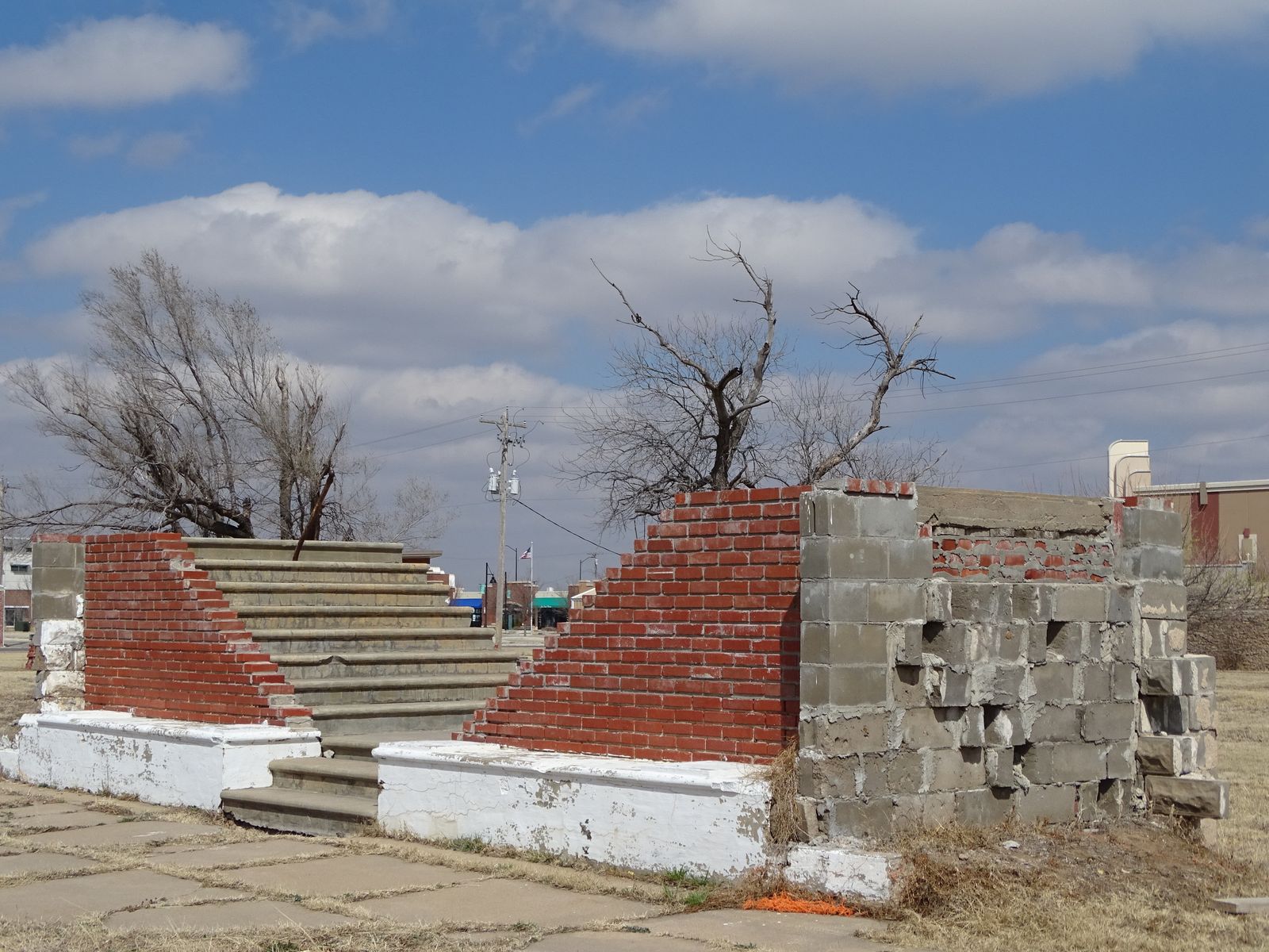 Von der gemauerten Kirche bliebt nur die Eingangstreppe übrig