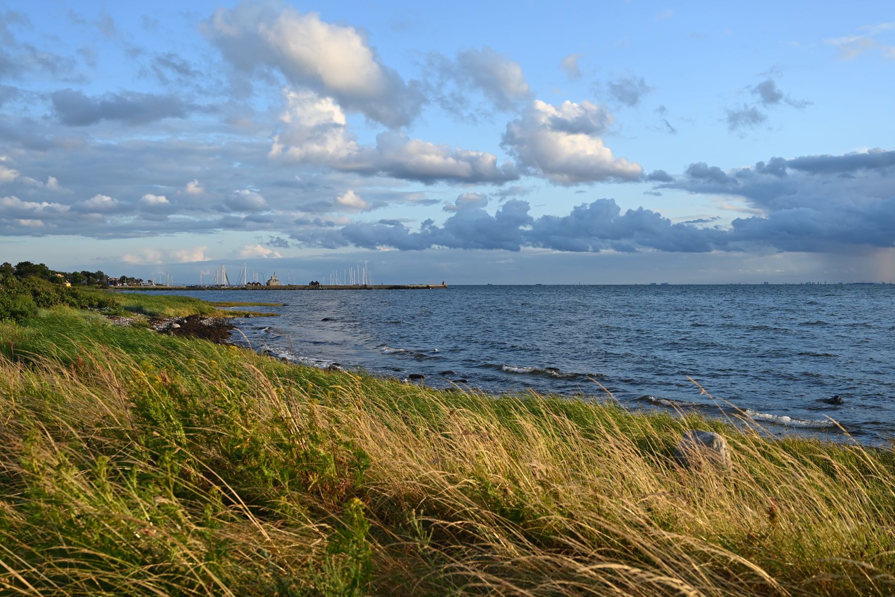 Ankunft in Schweden am ersten Abend. Rechts am Horizont erkennt man die Skyline von Kopenhagen.