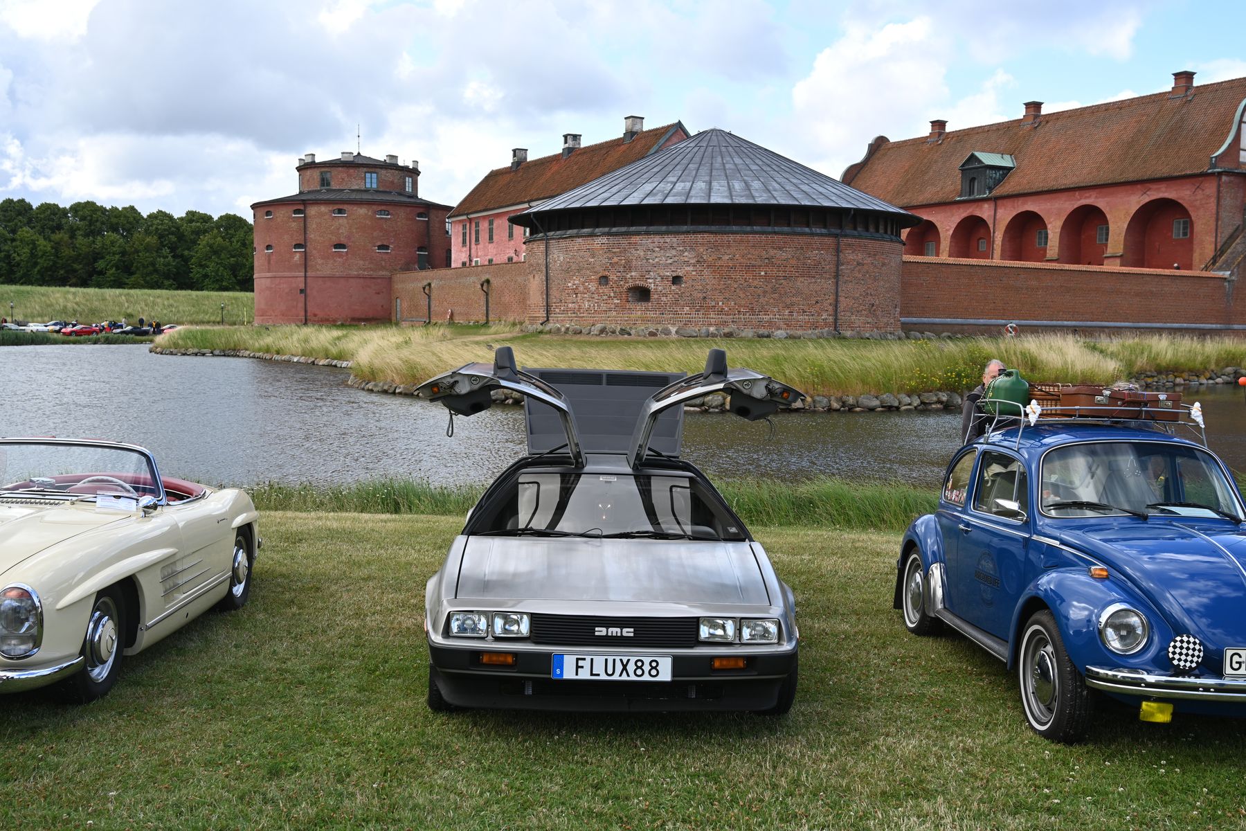 Oldtimertreffen an der Burg Landskrona. Im Fahrzeug in der Mitte lag allerdings kein Sportalmanach herum, nur der Fluxkompensator blinkte noch ein wenig.