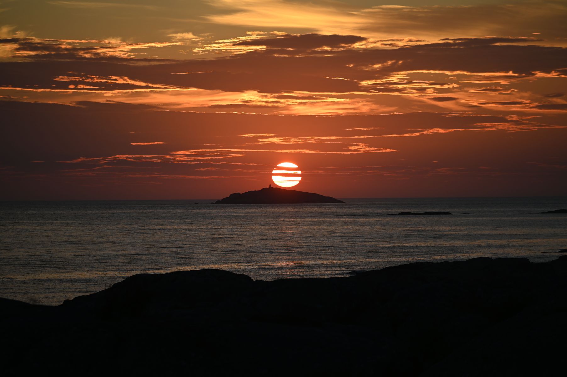 Auf der Insel Fotö hat uns dieser Stellplatz an der Marina sehr gut gefallen. Direkt zwischen den Schären und teilweise mit Blick aufs Meer. Wenn es keinen Blick gab, dann brauchte man nur zehn Meter gehen, um diesen Sonnenuntergang genießen zu können: