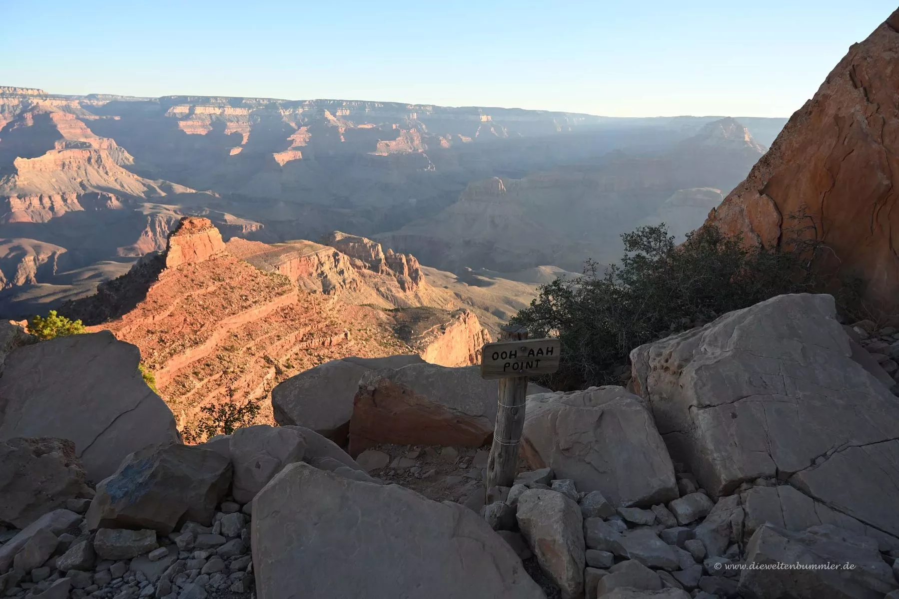 Der erste Punkt, an dem man einen tollen Blick in den Canyon erhält, ist der Ooh Aah Point. Der Name ist Programm.