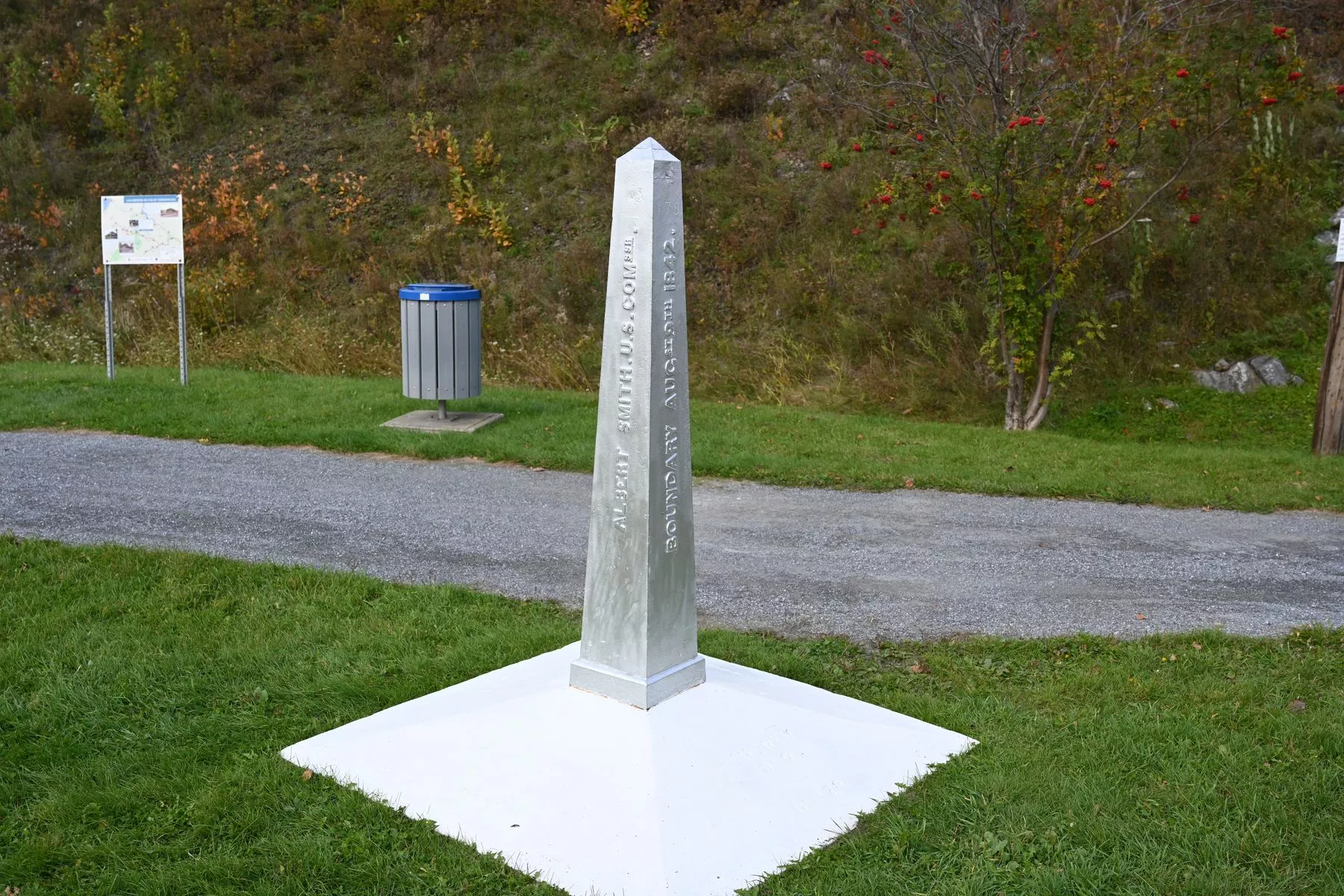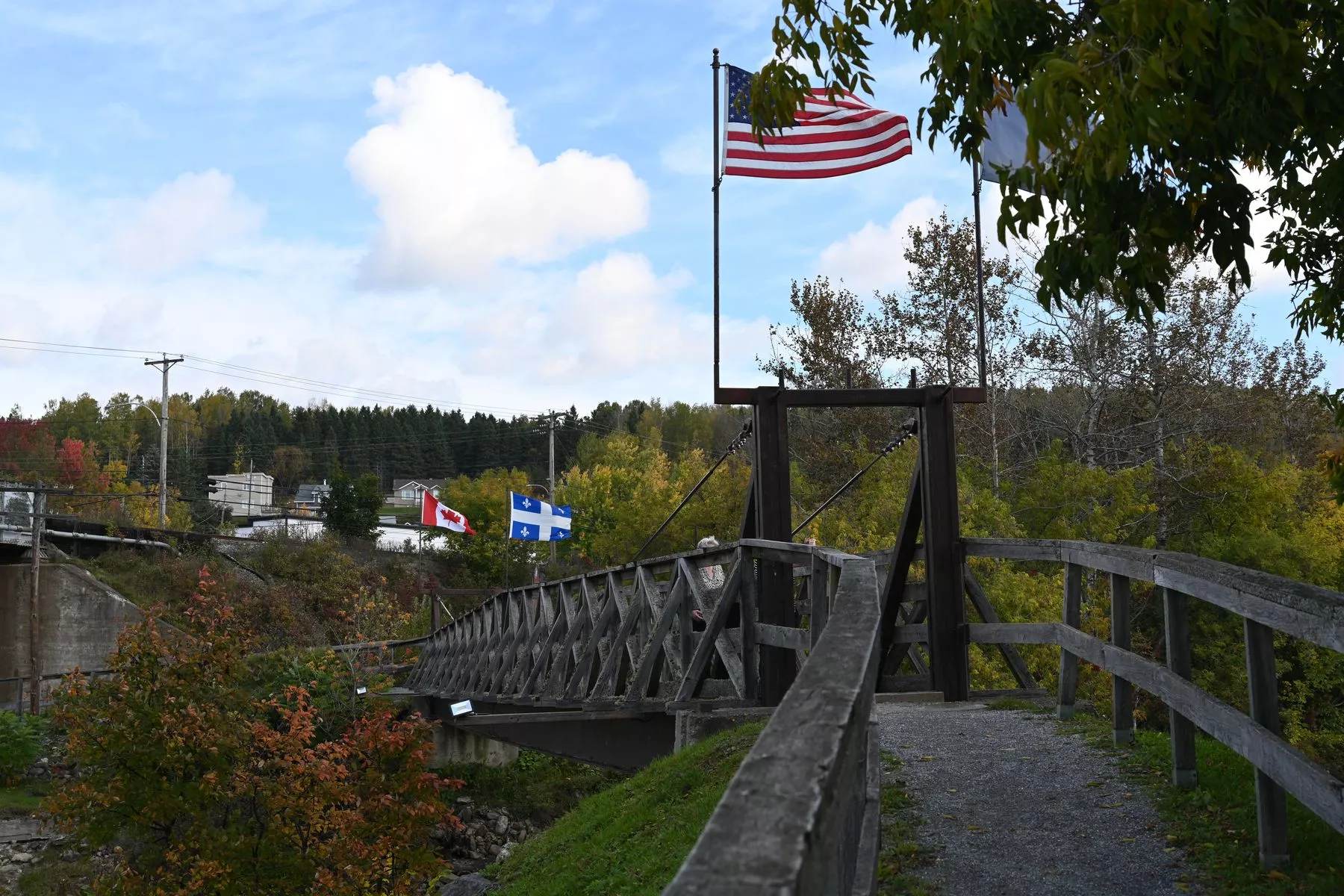 Und zwar zu Fuß von Kanada aus. Ganz ohne Grenzkontrolle gelangt man auf einer kleinen Fußgängerbrücke über einen Fluss nach Maine, wo sich ein Picknickplatz befindet. Ein Hinweisschild, dass es sich um den nördlichsten Punkt der USA (Festlands-USA der 48 zusammenhängenden Staaten) handelt, gibt es jedoch nicht. Dafür diese Grenzmarkierung und eben diese Brücke zwischen den beiden Staaten: